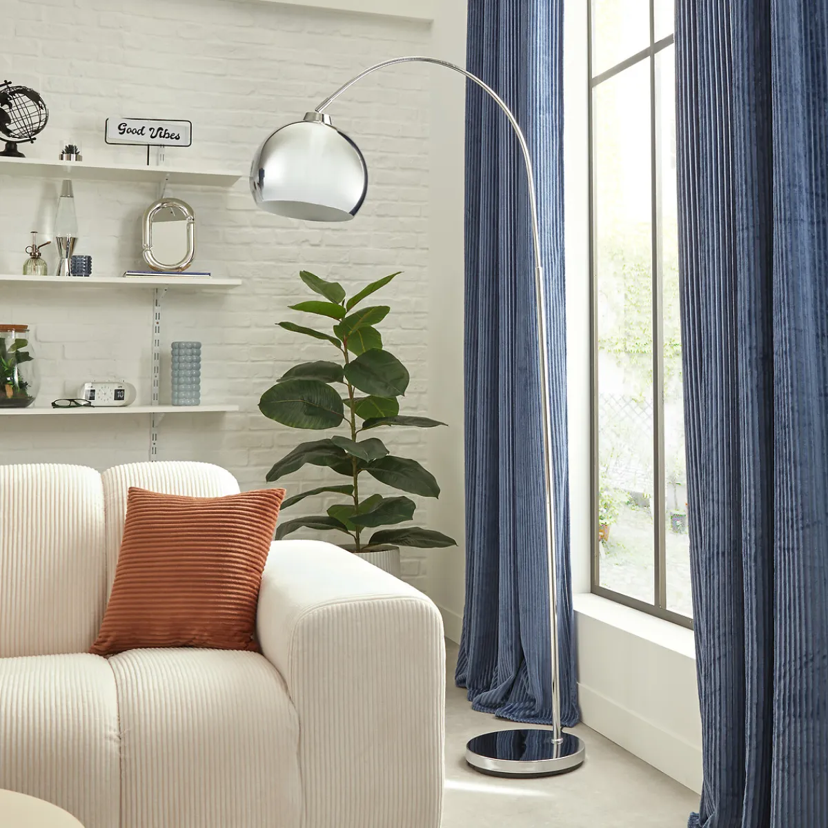Lámpara de pie FLORIS plata 177cm | Descubre este y otros artículos de iluminación hôma para iluminar y decorar tu hogar | Color: Plateado | Medidas: 117x29x70.5cm | Material: Metal y polipropileno | Marca: Atmosphera