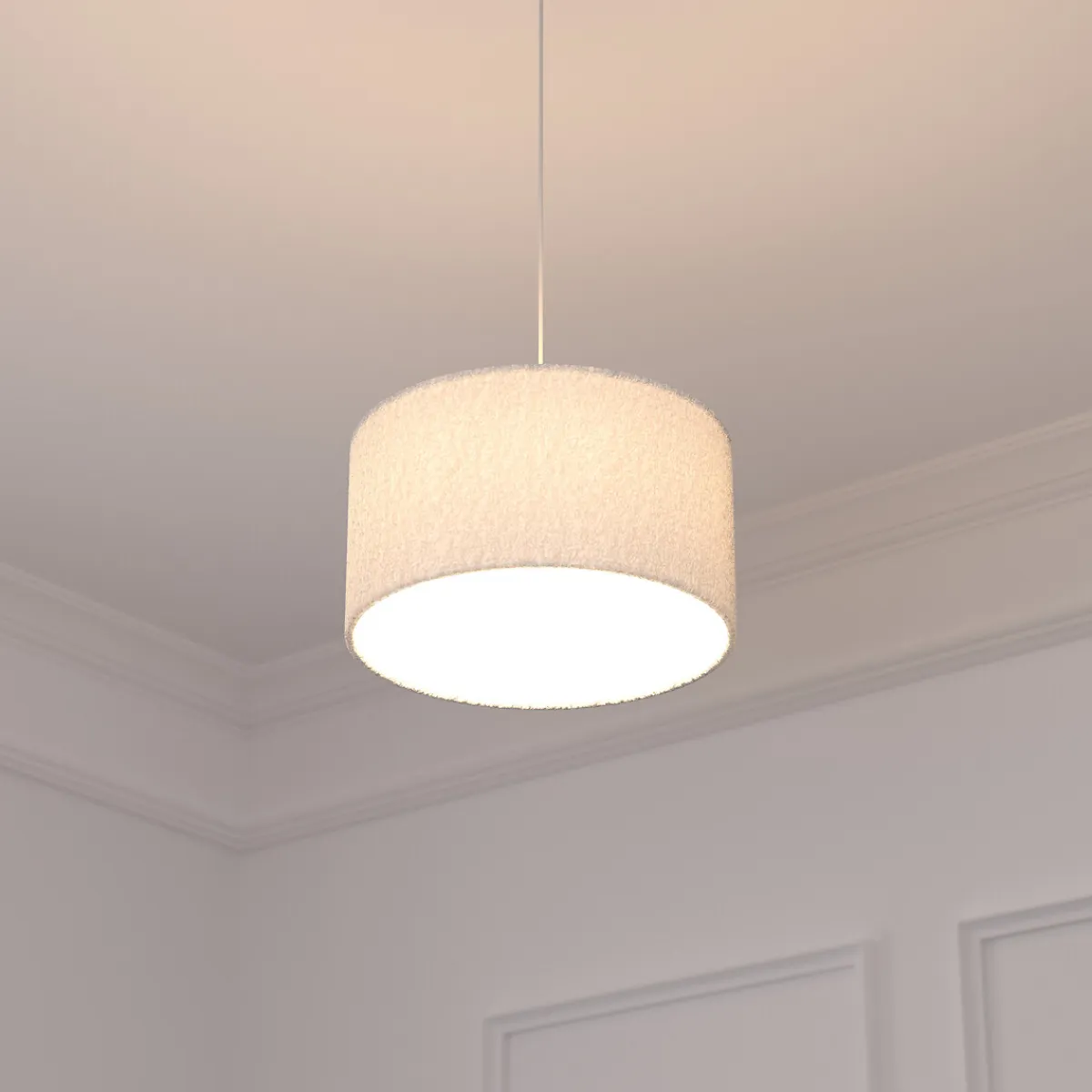 Lámpara De Techo Tina Con Pantalla De Piel Bouclé | Medidas del cable: 80cm | Casquillo: E27 | Potencia máxima: 25W | Bombilla no incluida | Descubre este y otros artículos de iluminación para iluminar y decorar tu hogar. | Color: Blanco | Medidas: 37x101cm | Material: PVC, Poliéster, Metal | Marca: Atmosphera