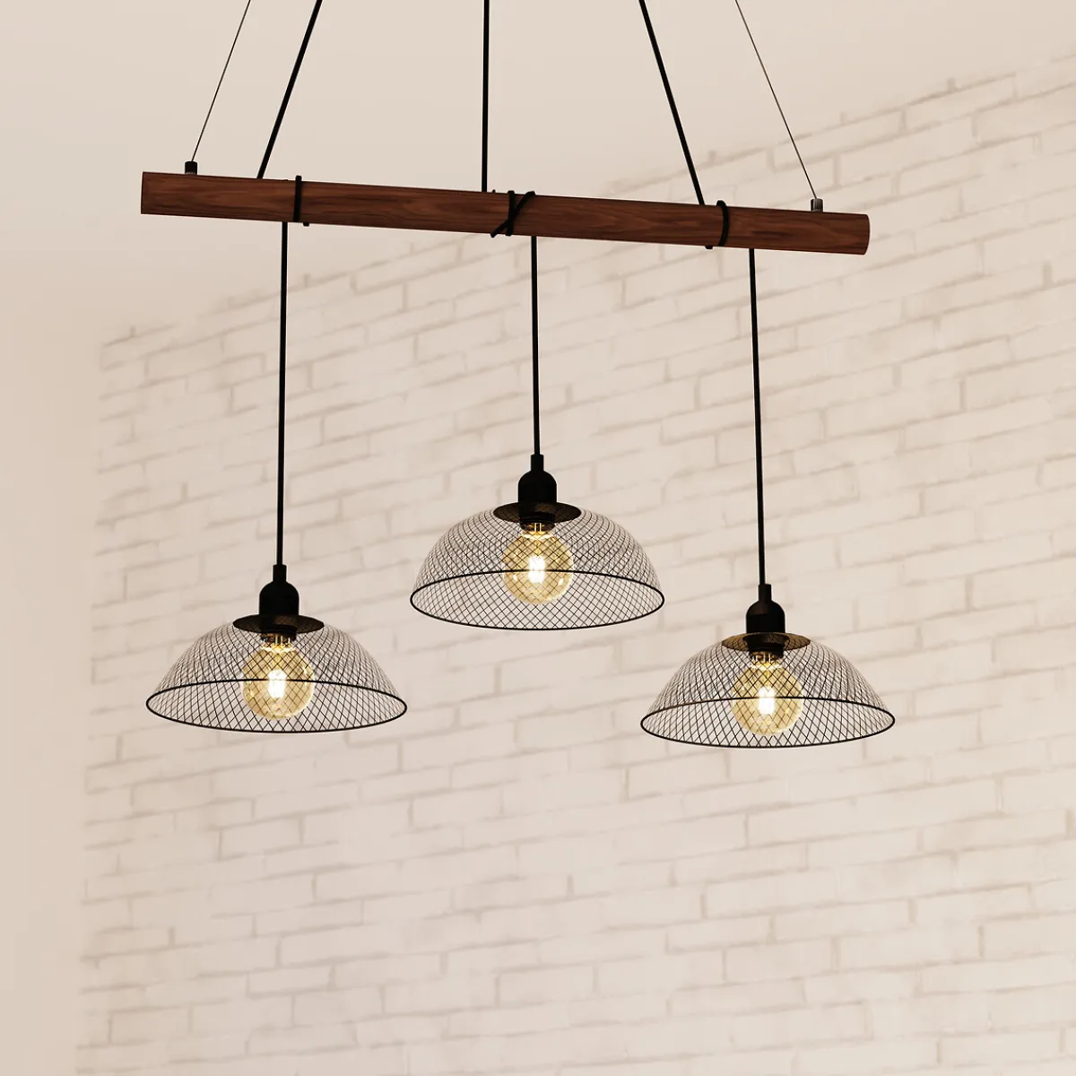 Lámpara de techo TIMMY negra de metal y madeira | 150x70cm | Descubre este y otros artículos de iluminación hôma para iluminar y decorar tu casa | Color: negro | Medidas: 150x70x70cm | Material: metal, madera de pino, polietileno | Marca: Atmosphera