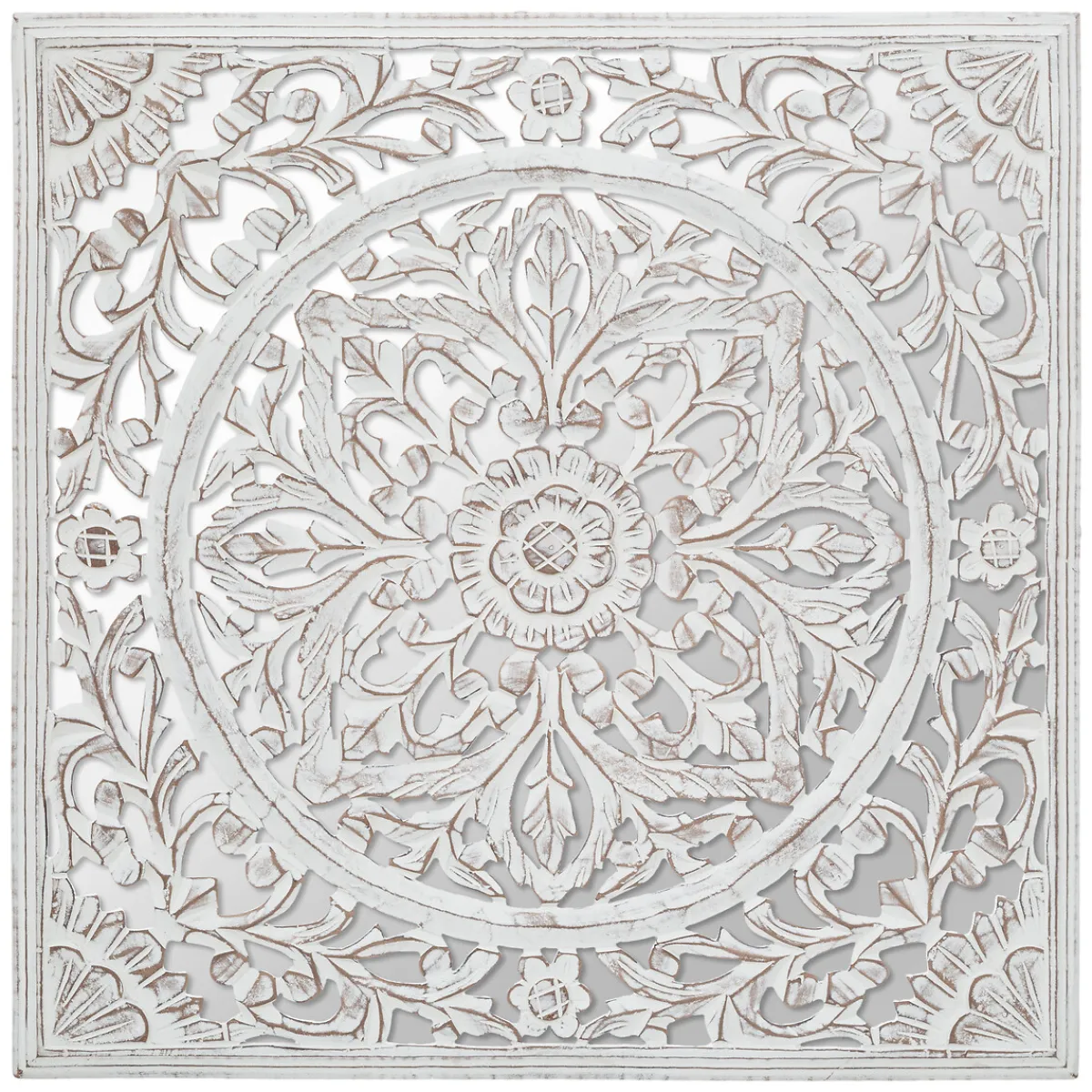 Mural De Madera Tallada Fanny Blanco 58cm | Descubre nuestra colección cuadros decorativos y personaliza tus paredes a tu gusto con hôma | Color: Blanco | Medidas: 58x3x58cm | Material: Mdf, Vidrio | Marca: Atmosphera