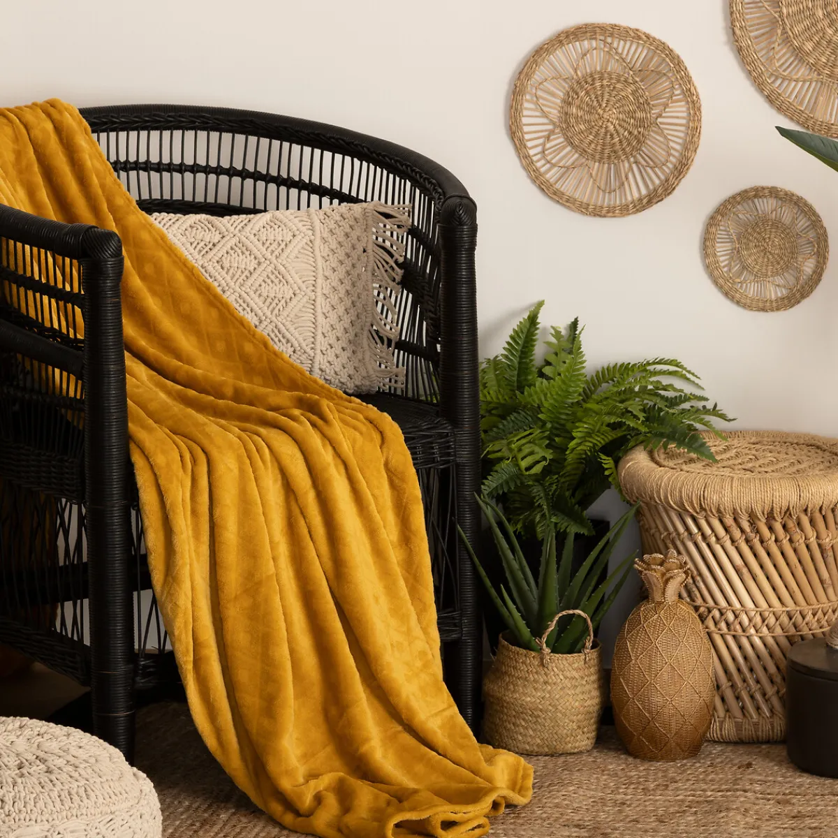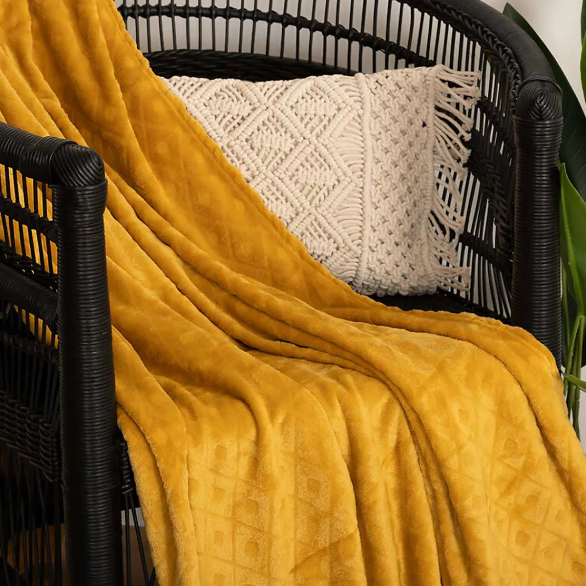 Manta Rombos 3D Ocre 180x230cm | La colección textil hôma reúne propuestas únicas para personalizar tu hogar. Desde cojines decorativos y fundas de cojín hasta las mantas más confortables, ¡vive en tu hogar con toda comodidad! | Material: Poliéster | Color: Ocre