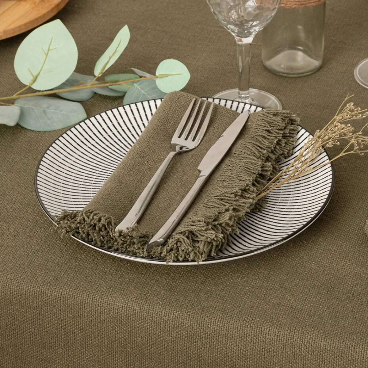 Juego 2 Servilletas Maha Algodón Verde Caqui | 40x40cm | Acabado Con Flecos | Instrucciones de lavado: Lavar a 30°C (Proceso normal), Prohibido blanquear, Programa de secado normal a 80°C, Planchar a temperatura moderada a 150°C máximo | Viste tu mesa y cocina con nuestra colección de textiles de cocina. Manteles, servilletas para servir sin olvidar la funcionalidad de los delantales y paños de cocina. ¡Todo detalle es fundamental! | Color: Caqui | Medidas: 40x40cm | Material: Algodón | Marca: Atmosphera