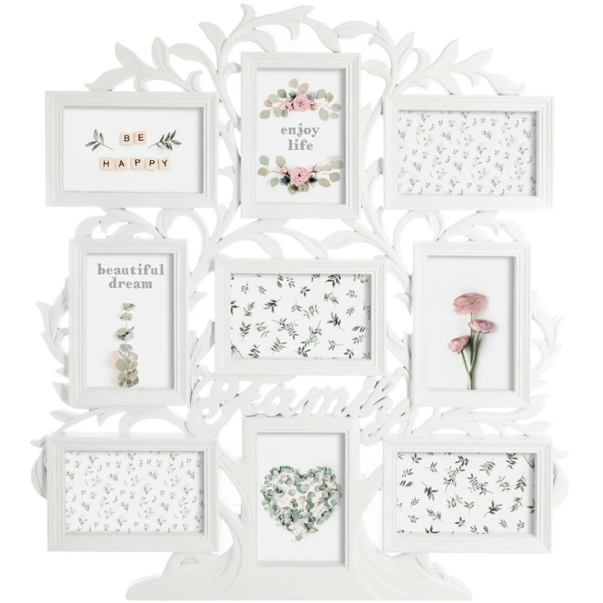Marco De Fotos Múltiple Blanco Para 9 Fotos | Medidas: 53x60cm | Descubre este y otros marcos de fotos hôma que tenemos para ti. Recuerda y decora tu casa con tus mejores momentos | Color: Blanco | Medidas: 53x60cm
