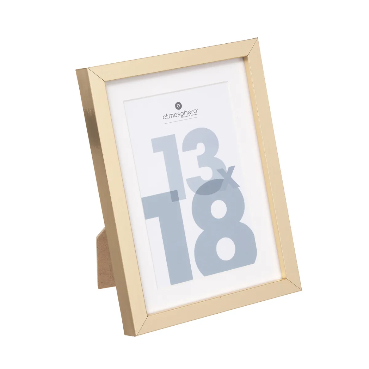 Portarretrato Manu Dorado 13x18cm | Descubre este y otros portarretratos hôma que tenemos para ti. Recuerda y decora tu casa con tus mejores momentos | Color: Dorado | Medidas: 19.8×1.8×14.8cm | Material: Mdf, Vidrio | Marca: Atmosphera