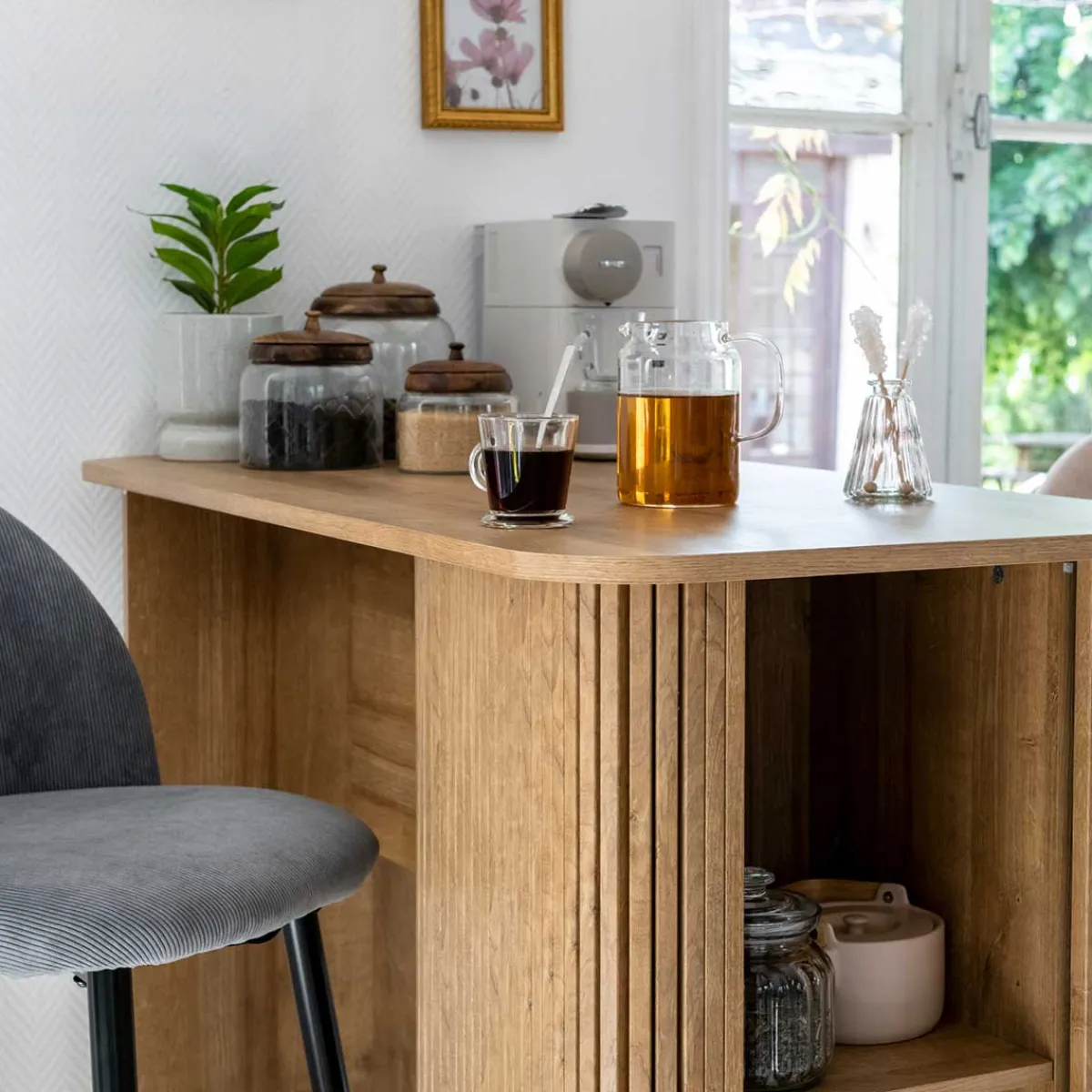 Mesa De Bar Colva Beige MDF | 102x60x120cm | Descubre las mesas auxiliares que tenemos para ti. Los muebles Hôma están diseñados para Home Happy Living. Los mejores artículos de decoración están aquí | Color: Beige | Medidas: 102x60x120cm | Material: MDF | Marca: Atmosphera