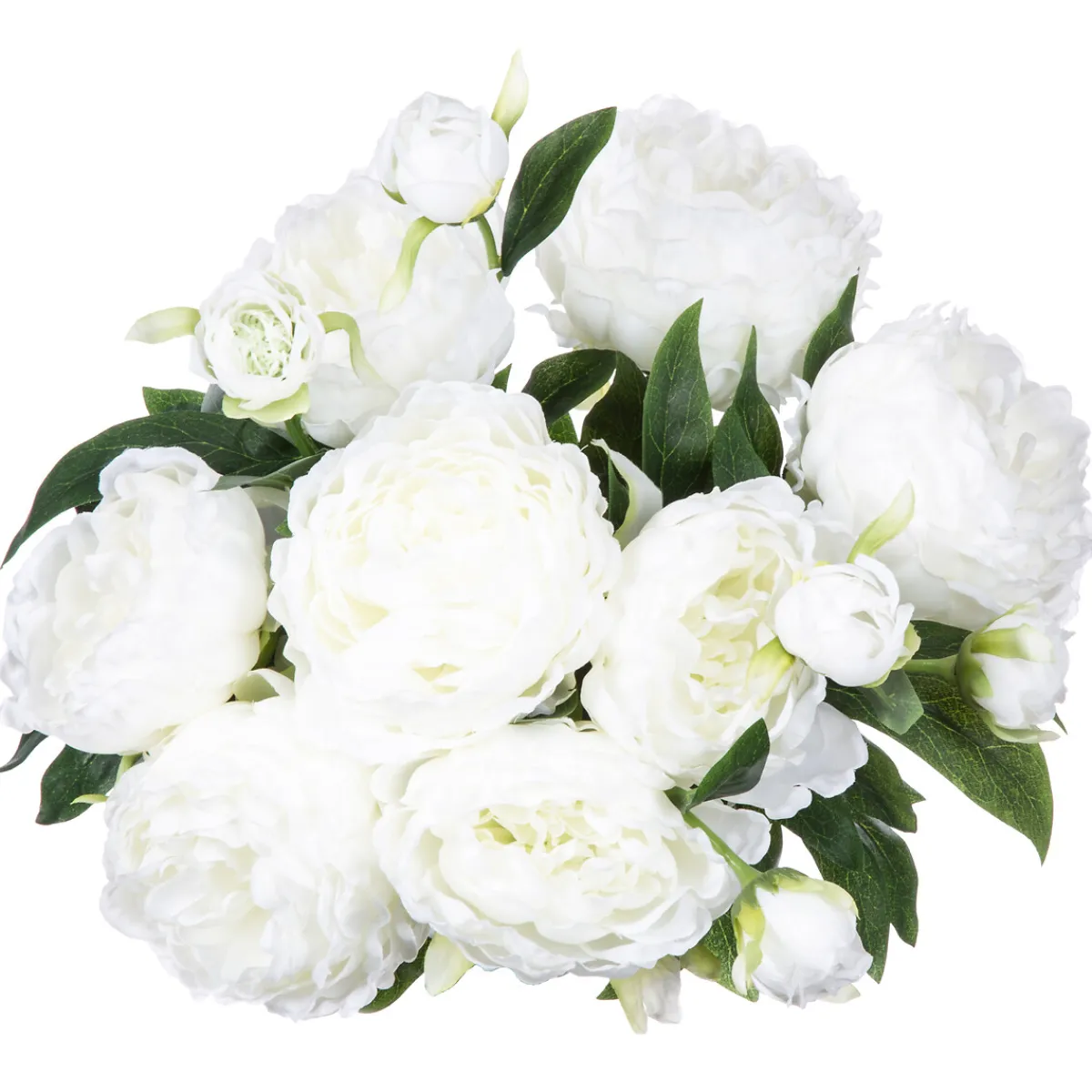 Bouquet Con 13 Peonías Blancas 50cm | Descubre la oferta de Plantas Artificiales que tenemos para ti. Flores Artificiales que mantendrán tu hogar siempre decorado | Color: Blanco | Medidas del bouquet: 50x29x29cm | Material: Pvc | Marca: Atmosphera