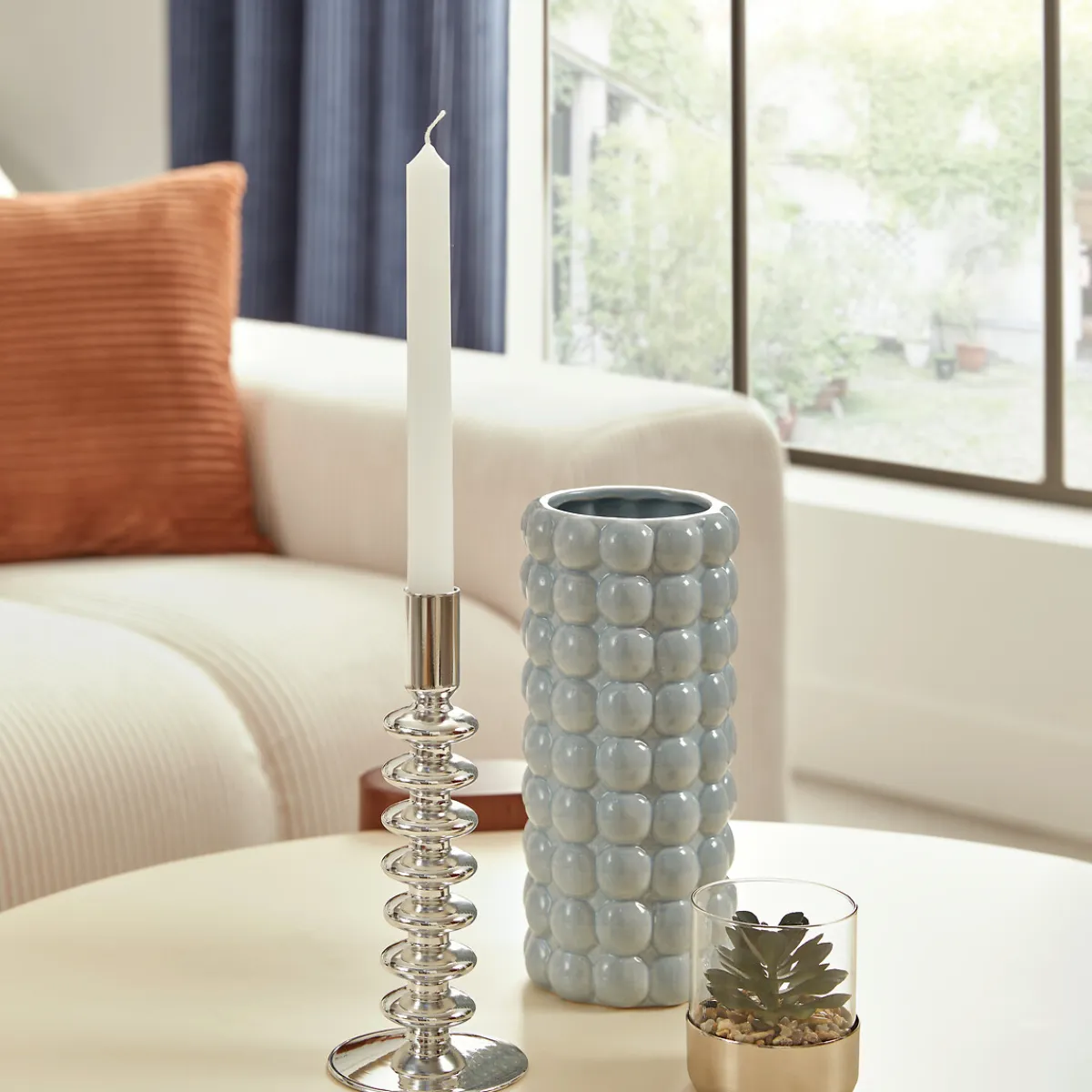 Portavelas SKY plateado de vidrio | Descubra nuestra gama de candelabros y encuentre el que mejor se adapte a la decoración de su hogar. | Color: Plateado | Medidas: 21.5x9x9cm | Material: Vidrio | Marca: Atmosphera