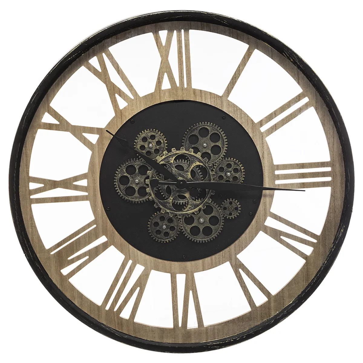 Reloj Pared Negro De Metal Y Madera 57cm | 3 x LR6 – AA – 1.5V pilas no incluidas | Mecanismo en movimiento, gracias a 2 pilas AA, que permiten que todos los engranajes giren | Descubre nuestros relojes decorativos para el hogar. Empieza a decorar tu casa hoy mismo con los artículos hôma | Color: Negro, Marrón | Medidas: 57x6x57cm | Material: Metal, Vidrio, Mdf, Polipropileno | Marca: Atmosphera
