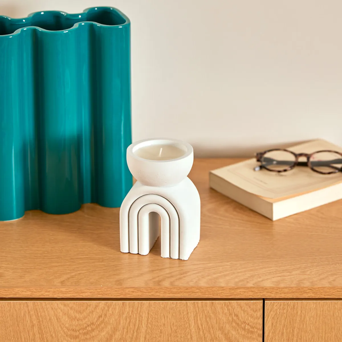 Vela perfumada FLOW blanca 70gr | Descubra nuestra gama de velas y velas decorativas para el hogar. La mejor decoración del hogar es hôma. | Color: Blanco | Medidas: 13x8x9cm | Material: Cemento y Parafina | Aroma: Naranja | Marca: Atmosphera