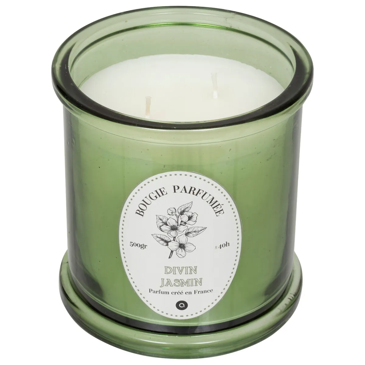 Vela perfumada HAPO jazmín 500gr | Descubre nuestra gama de velas y velones decorativos para el hogar. La mejor decoración para tu casa está en hôma | Color: Verde | Medidas: 12.5×11.3×11, cm | Material: Vidrio y Parafina | Aroma: Jazmín | Marca: Atmosphera