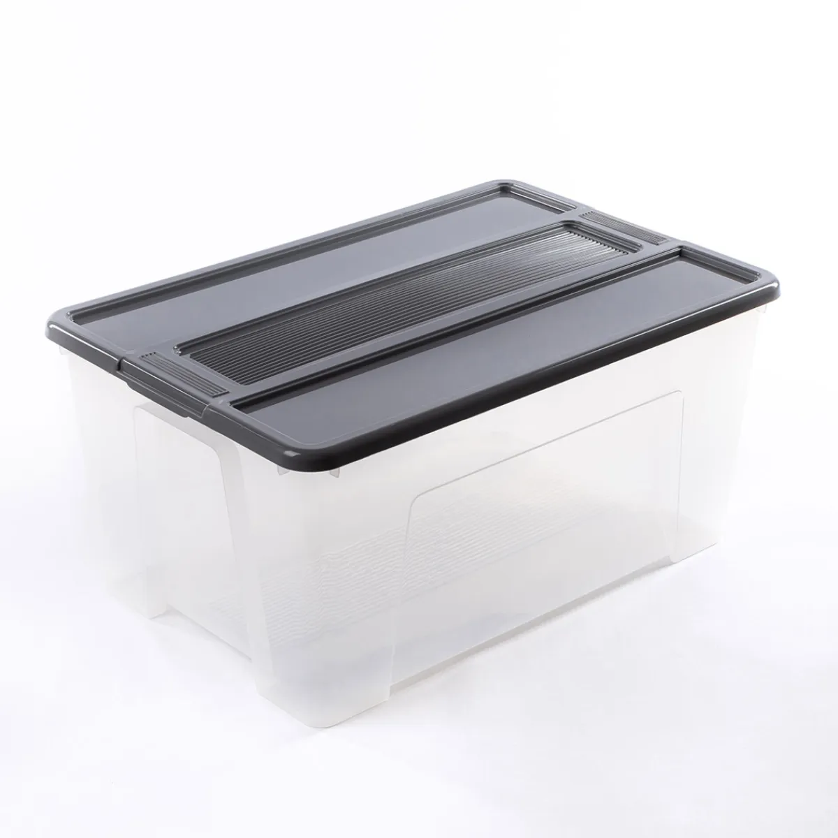Caja de Almacenaje Con Tapa Gris 48L | Conoce este y más artículos que tenemos disponibles para tu hogar. ¡Ordenar y organizar nunca ha sido tan fácil! Descubra la gama de almacenaje hôma | Color: Transparente, Gris | Medidas: 27.2x38x57cm | Material: Polipropileno | Capacidad: 48L