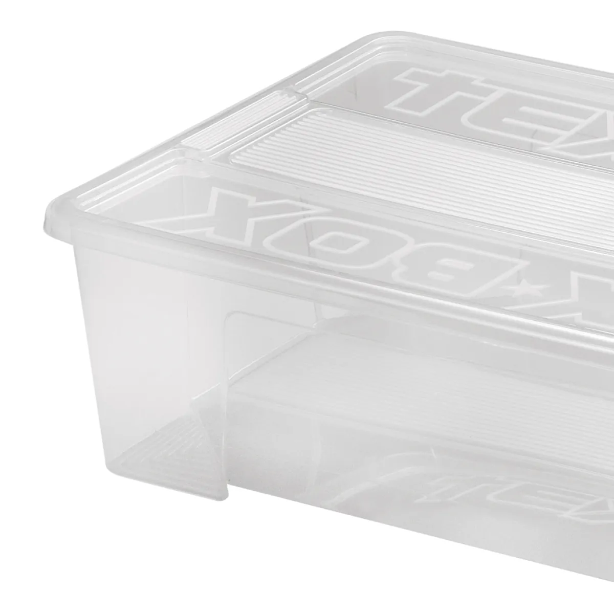 Caja de almacenaje TEX-BOX 28L | Conoce este y más artículos que tenemos disponibles para tu hogar. ¡Ordenar y organizar nunca ha sido tan fácil! Descubre la gama de almacenaje hôma | Color: Transparente | Medidas: 17x57x38.5cm | Capacidad: 28L | Material: Pvc