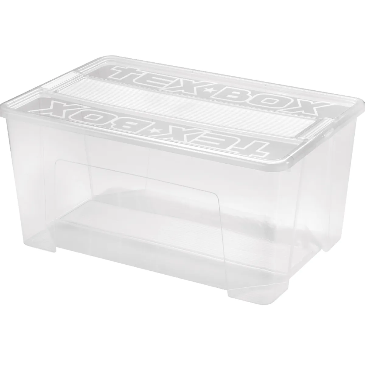 Caja de almacenaje TEX-BOX 48L | Conoce este y los demás artículos que tenemos disponibles para tu hogar. ¡Ordenar y organizar nunca ha sido tan fácil! Descubre la gama de almacenaje hôma | Color: Transparente | Medidas: 27.5×57.5x38cm | Capacidad: 48L | Material: Pvc