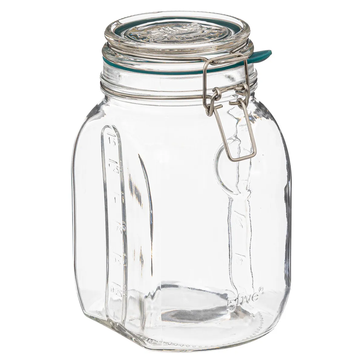 Tarro De Vidrio Tapa Hermética 1.5L | ¿Sabías que tu cocina puede ser el lugar más feliz del mundo? Descubre nuestra gama de utensilios para una cocina llena de Happy Home Living. ¡Cocinar con los utensilios adecuados es mucho más fácil! | Color: Transparente | Medidas: 19.5×14.5×9.5cm | Material: Vidrio | Capacidad: 1.5L | Marca: 5Five