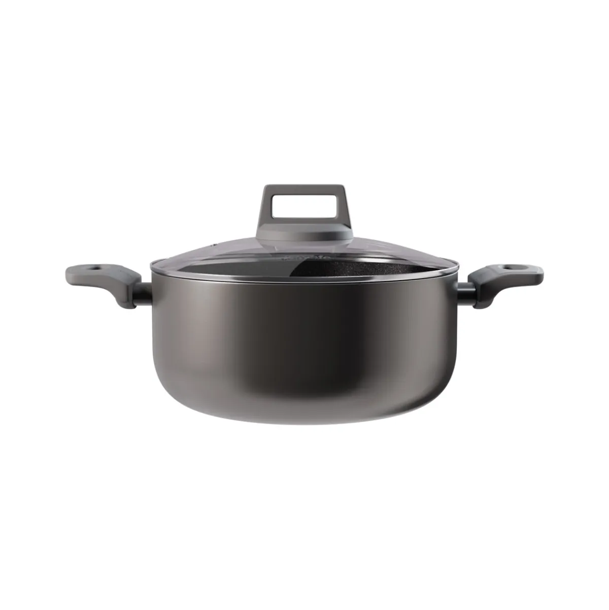 Cacerola Chicago Con Tapa De Vidrio 24cm | Fabricada en aluminio prensado, recubrimiento antiadherente en spray, fondo de inducción, con distribución uniforme del calor, mango recubierto de silicona | Apta para todas las fuentes de calor | Fácil de lavar, ligera y fácil de manejar | Descubre todo para tu cocina y horno en homa.es . Ollas, sartenes y cacerolas para cualquier tipo de cocina | Medidas: 24cm | Material: Aluminio