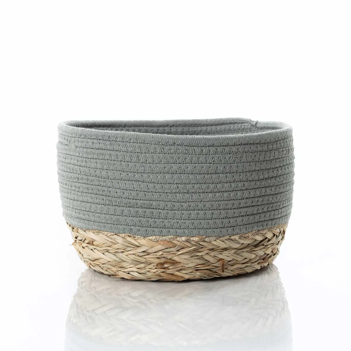 Cestas De Almacenamiento>Cesto de baño verde caqui y natural 22x30cm