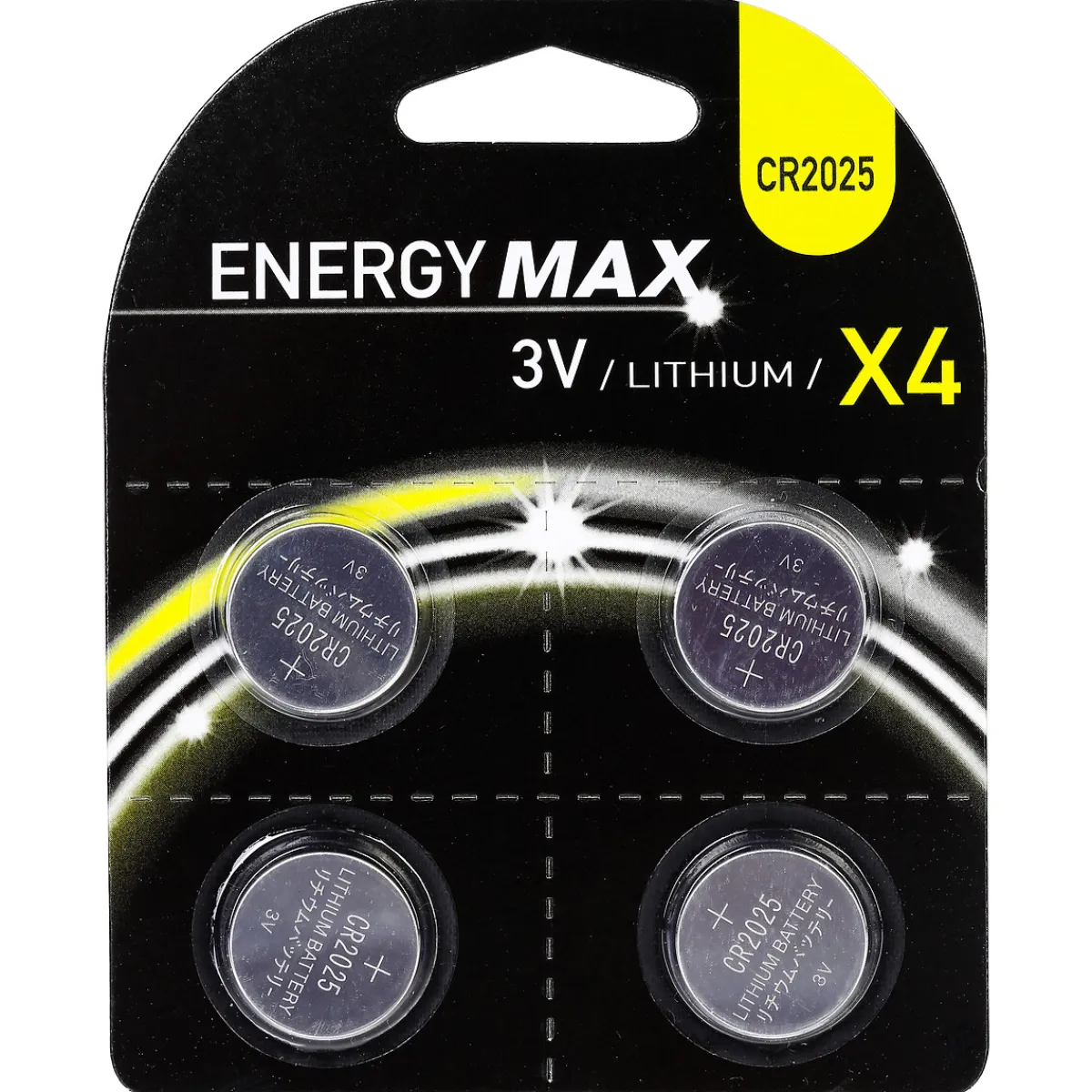 Pila redonda CR2025 | 4 Unidades | Color: Plata | Medidas de la pila: 1.9×0.2cm | Material: Litio