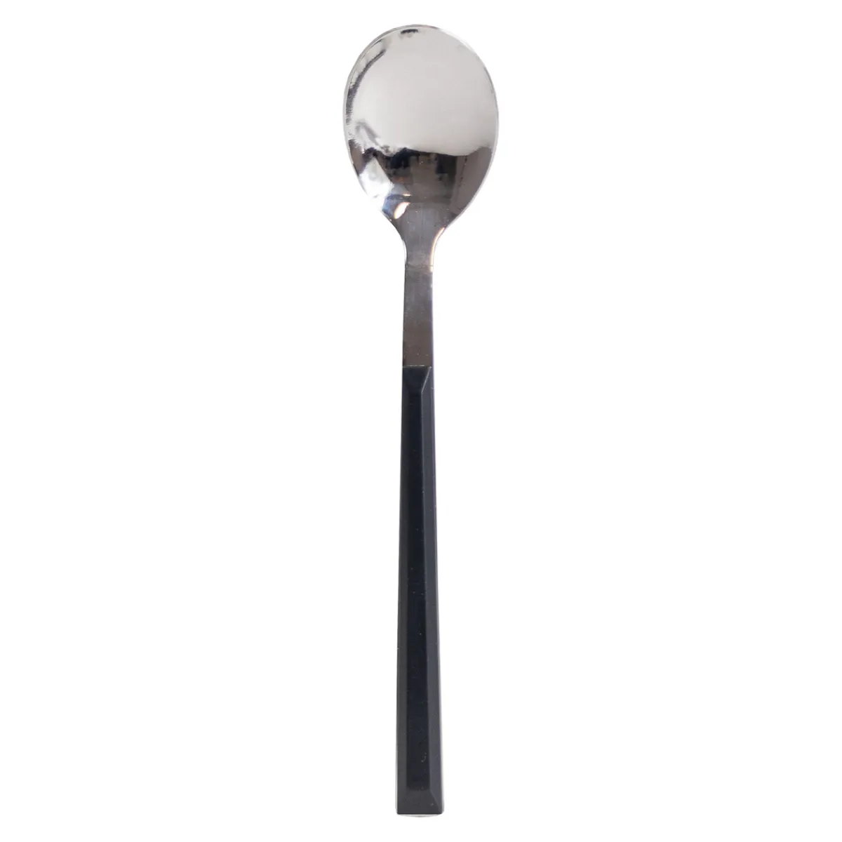 Cuchara de postre inox con mango negro | Todo lo que tu mesa necesita está en homa.es, echa un vistazo a nuestra colección de vajillas, vasos, cubiertos, posavasos, soportes, etc. ¡Sirve con Happy Home Living, y todo sabrá mucho mejor! | Color: Plateado, Negro | Medidas: 3x16cm | Material: Acero Inoxidable