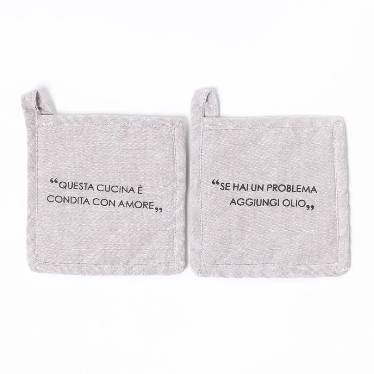 Delantales, Asas Y Paños>Juego de 2 agarradores con frase taupe de algodón