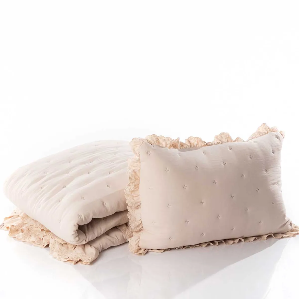 Edredones Y Colchas>Edredón AMALFI crudo con encaje 250x260cm