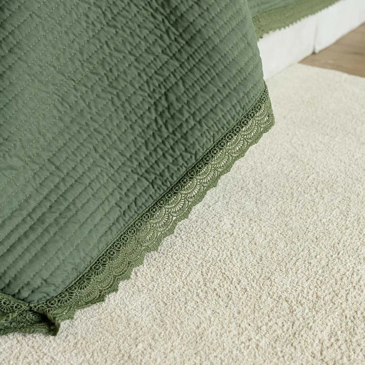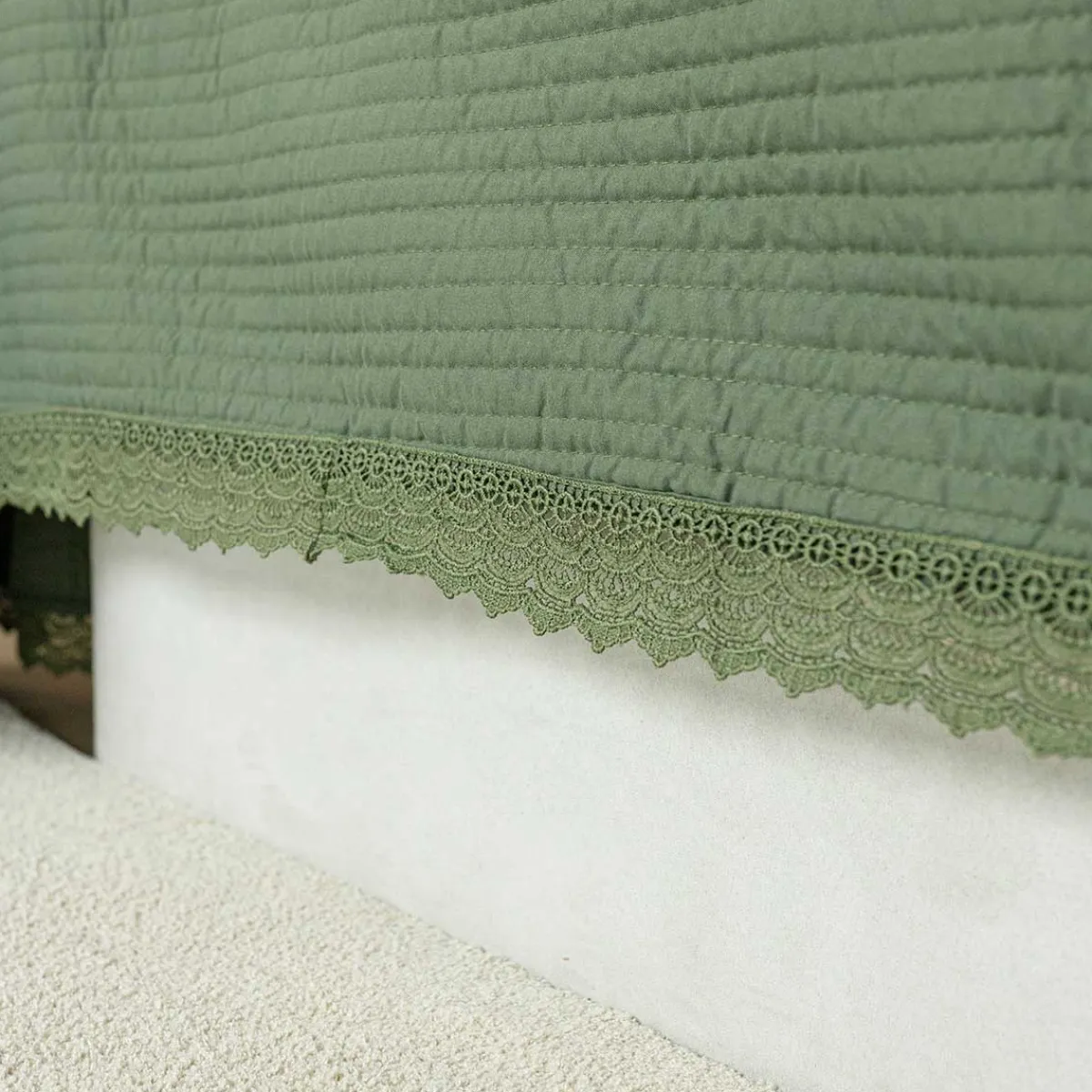 Edredones Y Colchas>Edredón verde con volante de encaje 220x240cm