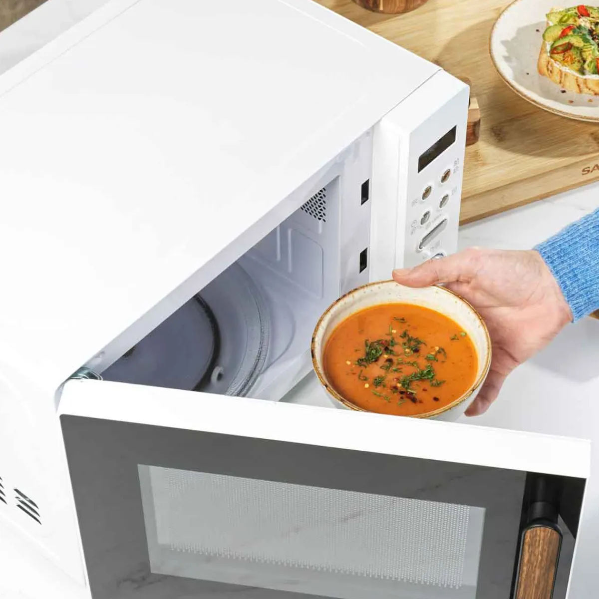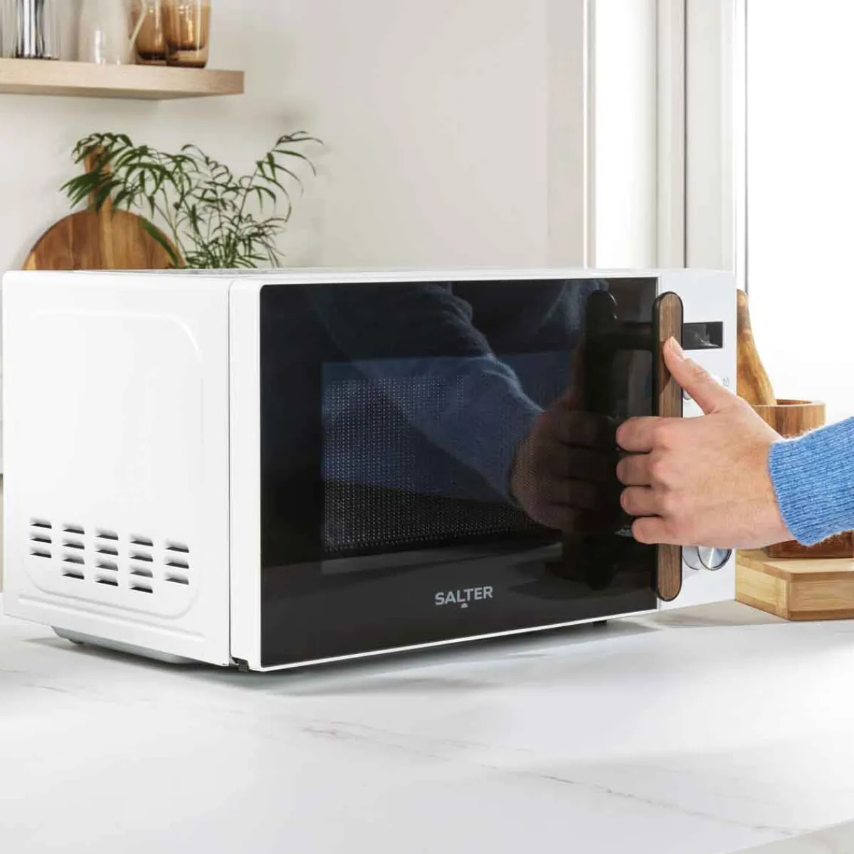 Microondas digital SALTER TORONTO blanco | Potencia máxima: 800w | Con 8 menús automáticos para su comodidad. Función de descongelación por peso y tiempo. Hasta 95 minutos de cocción. Bloqueo de seguridad para niños. Base giratoria de cristal de 25,5 cm. ¿Sabías que tu cocina puede ser el lugar más feliz del mundo? Descubre nuestra gama de utensilios para una cocina llena de Happy Home Living. ¡Cocinar con los utensilios adecuados es mucho más fácil! | Color: Blanco | Medidas: 29,1x38x48,8cm | Material: Vidrio, Metal, Plástico | Capacidad: 20L