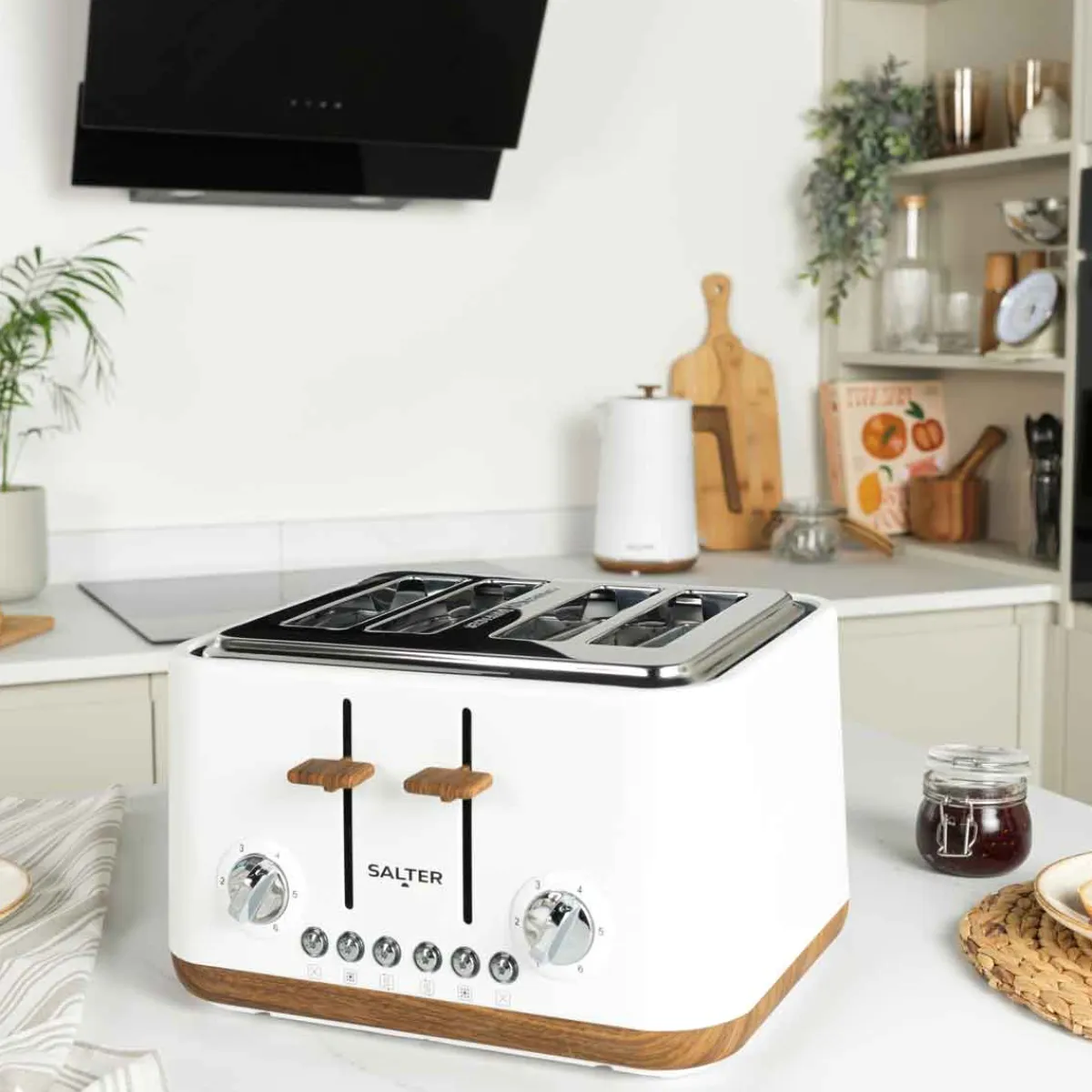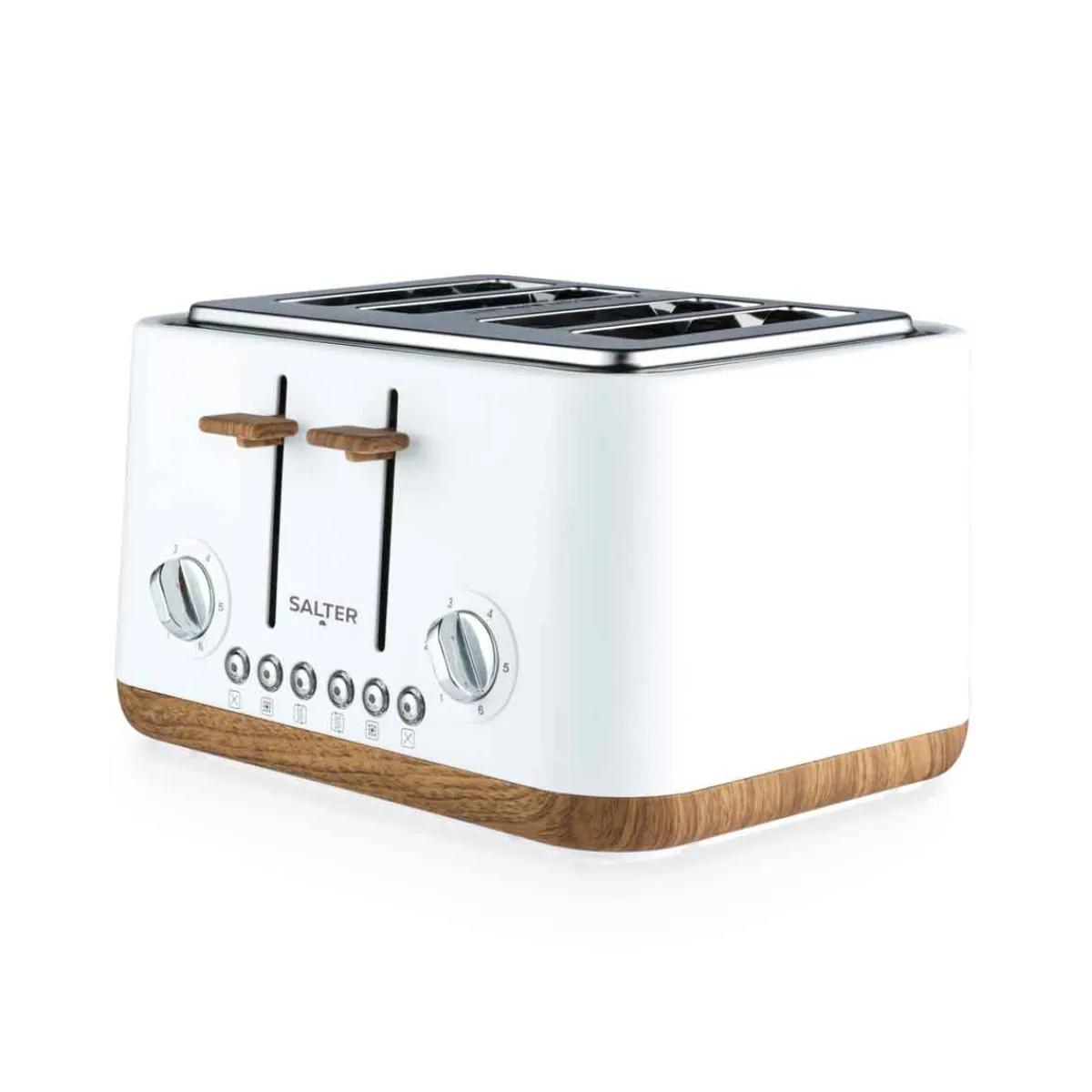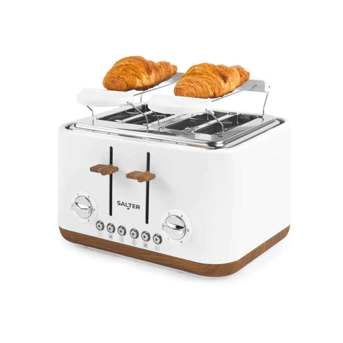 Tostadora 4 rebanadas SALTER TORONTO blanca | Potencia máxima: 1630w | Funciones descongelar y recalentar. 6 posiciones de calor. Con bandeja recogemigas fácil de extraer. ¿Sabías que tu cocina puede ser el lugar más feliz del mundo? Descubre nuestra gama de utensilios para una cocina llena de Happy Home Living. Cocinar con los utensilios adecuados es mucho más fácil. | Color: Blanco | Medidas: 24.2×32.6×36.4cm | Material: Acero inoxidable