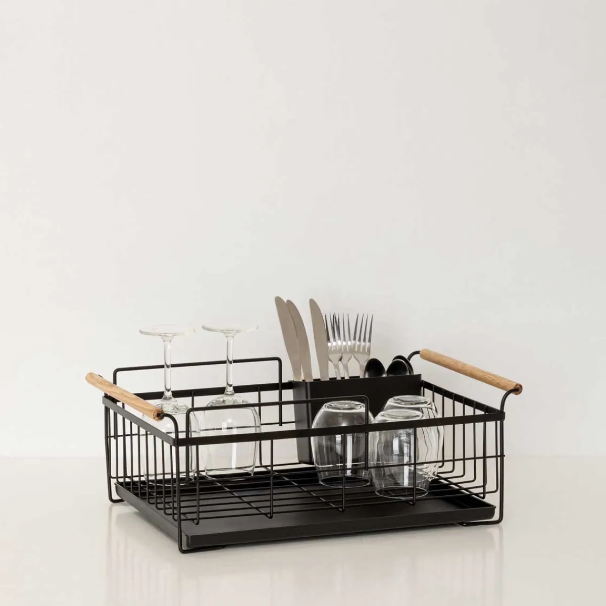 Escurreplatos BlackWood Negro | Cubertero compartimentado incluido. Bandeja extraíble. Estante extraíble para platos. | Número de platos: 9, número de vasos de agua: 15; cubertero: 1 | ¿Sabías que tu cocina puede ser el lugar más feliz del mundo? Descubre nuestra gama de utensilios para una cocina llena de Happy Home Living. ¡Cocinar con los utensilios adecuados es mucho más fácil! | Color: Negro | Medidas: 28.3x29x48cm | Material: Hierro