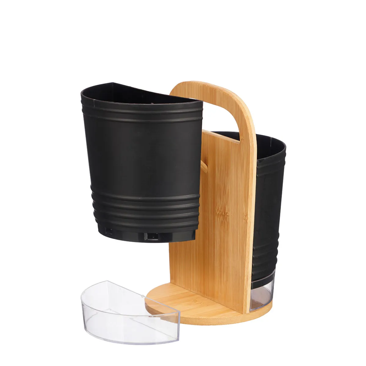 Porta Utensilios Doble Negro Con Mango De Bambú | 21,5x14x14,6cm | ¿Sabías que tu cocina puede ser el lugar más feliz del mundo? Descubre nuestra gama de utensilios para una cocina llena de Happy Home Living. Cocinar con los utensilios adecuados es mucho más fácil. | Color: Negro, Marrón Tamaño: 21,5x14x14,6cm Material: Plástico, Bambú