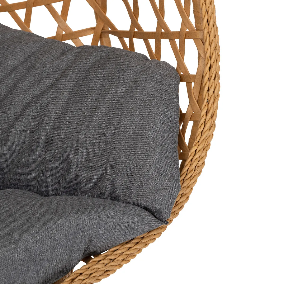Mecedora gris pardo con cojín blanco | Medidas: 195x65x82cm | Material: Acero, Ratán Sintético y Poliéster | Peso máximo soportado: 110Kg