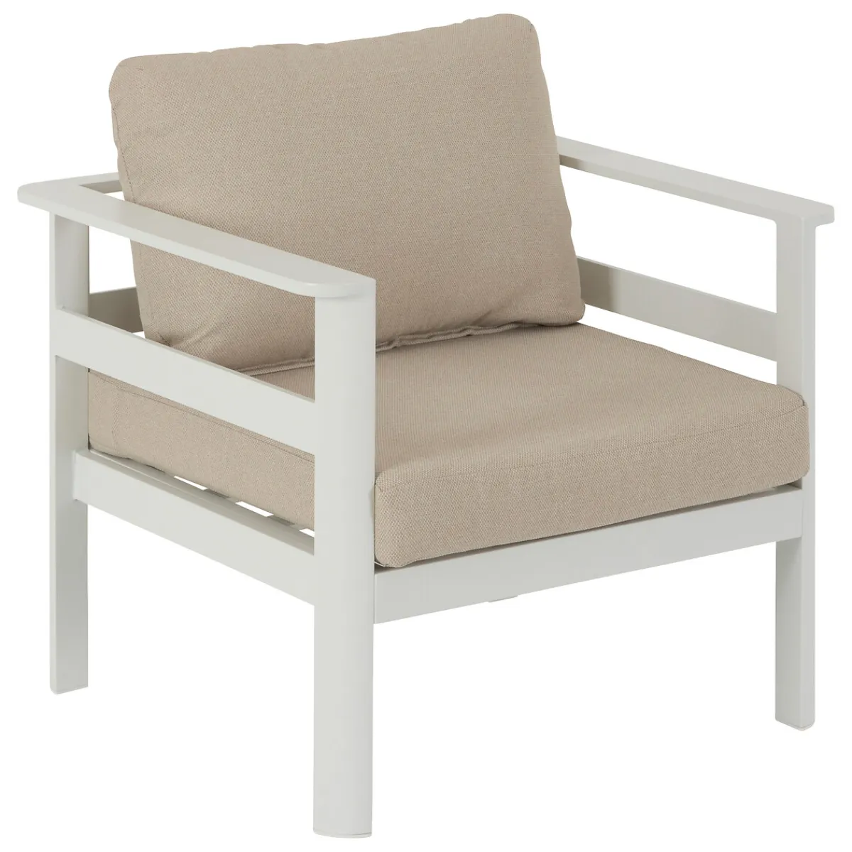 Juego de jardín angular PARADIZE blanco | Aluminio, Madera de Acacia, Poliéster, 6 Asientos | Estructura tratada con epoxi antioxidante. Compuesto por un sofá esquinero de 125x79x65cm; un sillón de 80x75x66cm; una mesa baja de 86x86x38cm; una mesa baja de 72.5×72.5x31cm | Fundas de cojines extraíbles para facilitar la limpieza. El tejido hidrófugo permite que el agua resbale sin penetrar en el material. Producto tratado contra la decoloración. Pies ajustables para compensar las irregularidades del suelo y proporcionar una mayor estabilidad | Color: Blanco | Material: Aluminio, Madera de acacia y Poliéster| Marca: Hespéride