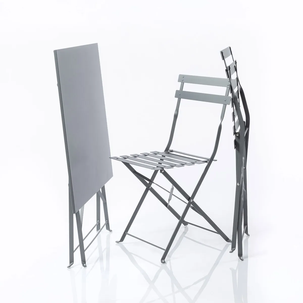 Juego de jardín CAMARGUE gris antracita | 2 Asientos | 2 Sillas 42x46x80cm; 1 Mesa 70x70x71cm | Color: Gris antracita | Material: Acero | Marca: Hespéride