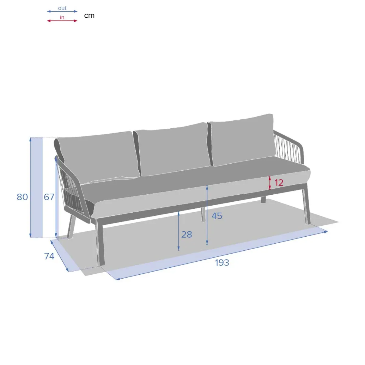 Sofá Barcelone 3 Plazas | Estructura con tratamiento antioxidante y epoxi. Se puede quitar la funda de los cojines para facilitar su limpieza. Tejido con tratamiento hidrófugo, que permite que el agua se escurra sin penetrar en el material. Compatible con la referencia 412710 para proteger tus muebles del sol y de las inclemencias del tiempo | Producto tratado contra la decoloración | Para una mejor armonía, combina este producto con la gama Barcelona | Número de cojines de asiento: 1 | Número de cojines de respaldo: 3