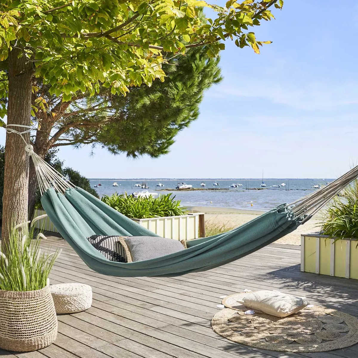 Hamaca YAQUI verde jade sin estructura 150x307cm | Las cuerdas estiradas permitirán que te relajes con seguridad y confianza | Viene con una bolsa de transporte para facilitar el manejo. Se recomienda limpiar la alfombra con agua y jabón luego guardar en un lugar seco | Color: Verde | Medidas: 150x307cm | Material: Algodón, Poliéster | Marca: Hespéride