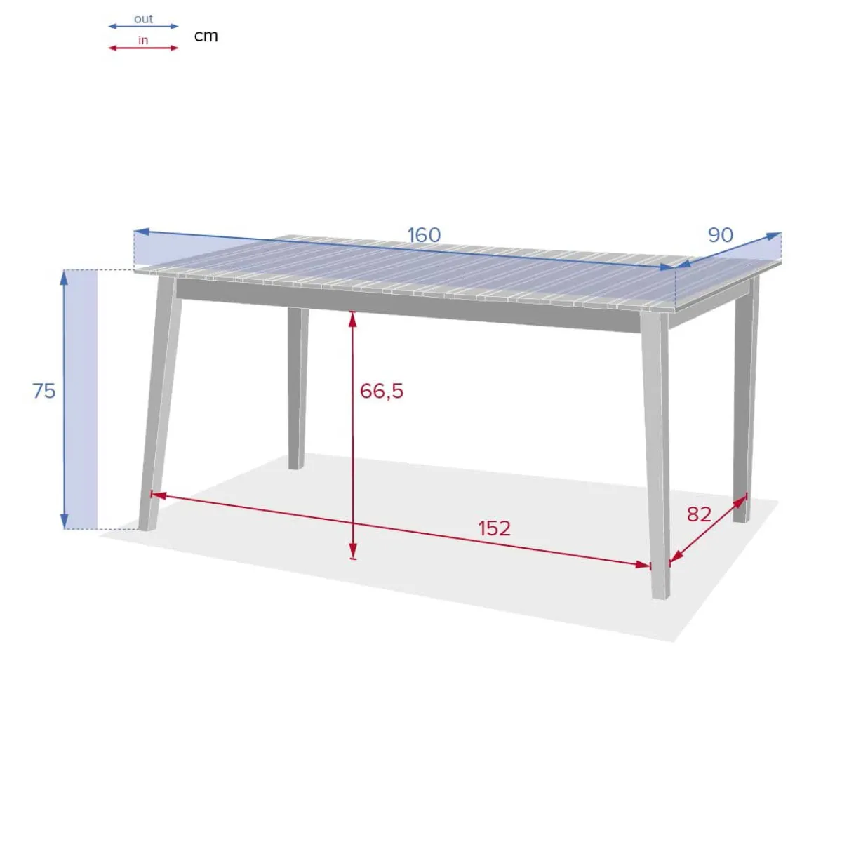 Mesa TIWI marrón de madera acacia 6 personas | Medidas: 75x90x160cm | 6 Sillas | Madera Fsc, protegida con aceite | Compatible con la ref. 412388 para proteger sus muebles del sol y la intemperie