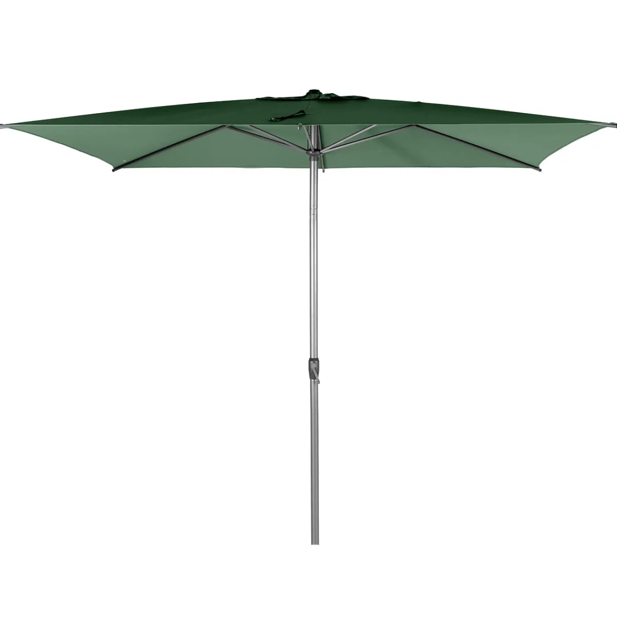 Parasol LOOMPA verde oliva 2x3m | Base no incluída | Abertura por manivela | Sistema de inclinación | Tubo de ventilación para facilitar la circulación del aire | Lona atornillada en los extremos para mejor mantenimiento de la lona | Elástico de abertura mariposa | Color: Verde Oliva, Gris Oscuro | Medidas: 2.5x2x3m | Material: Aluminio, Acero , Poliéster | Marca: Hespéride