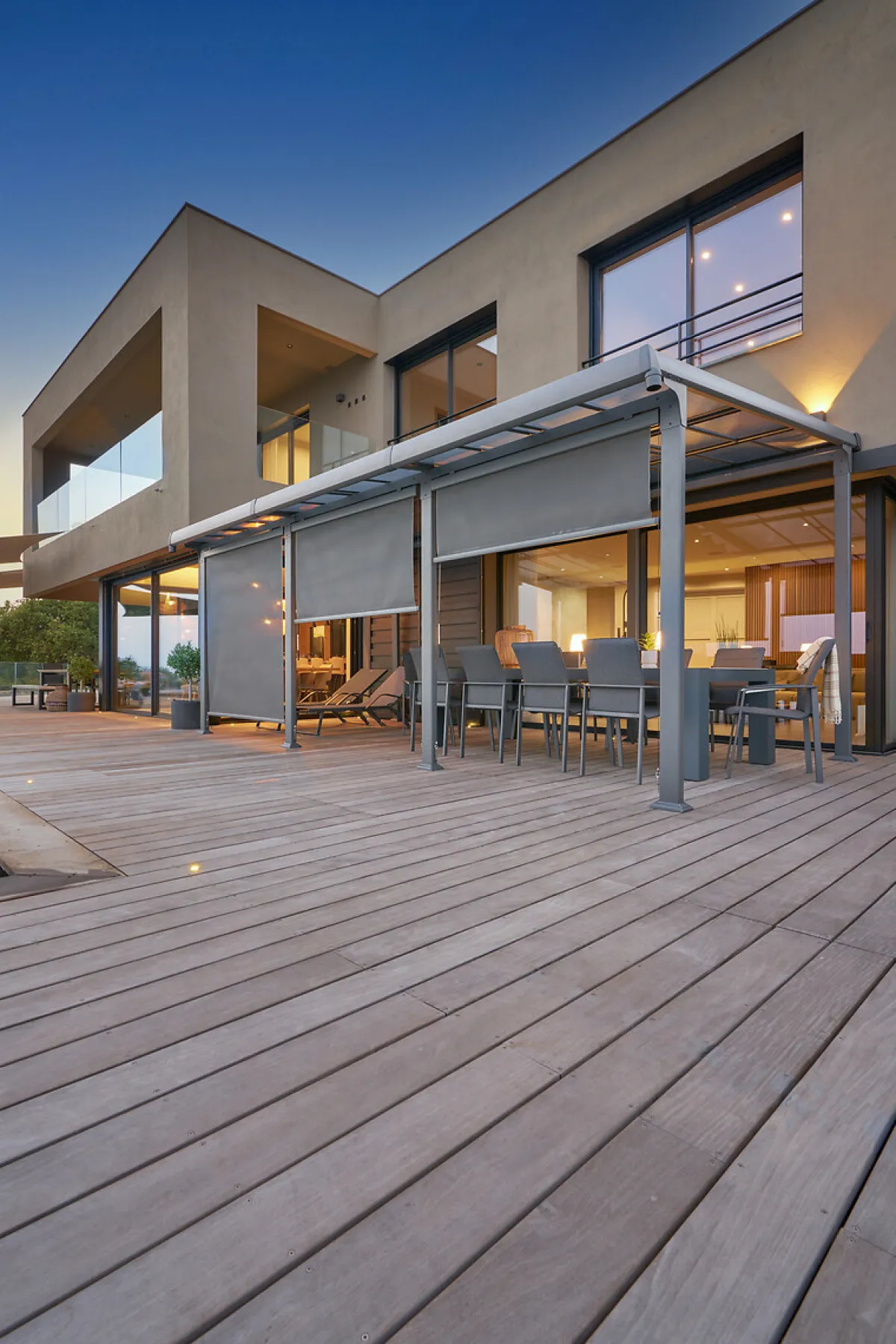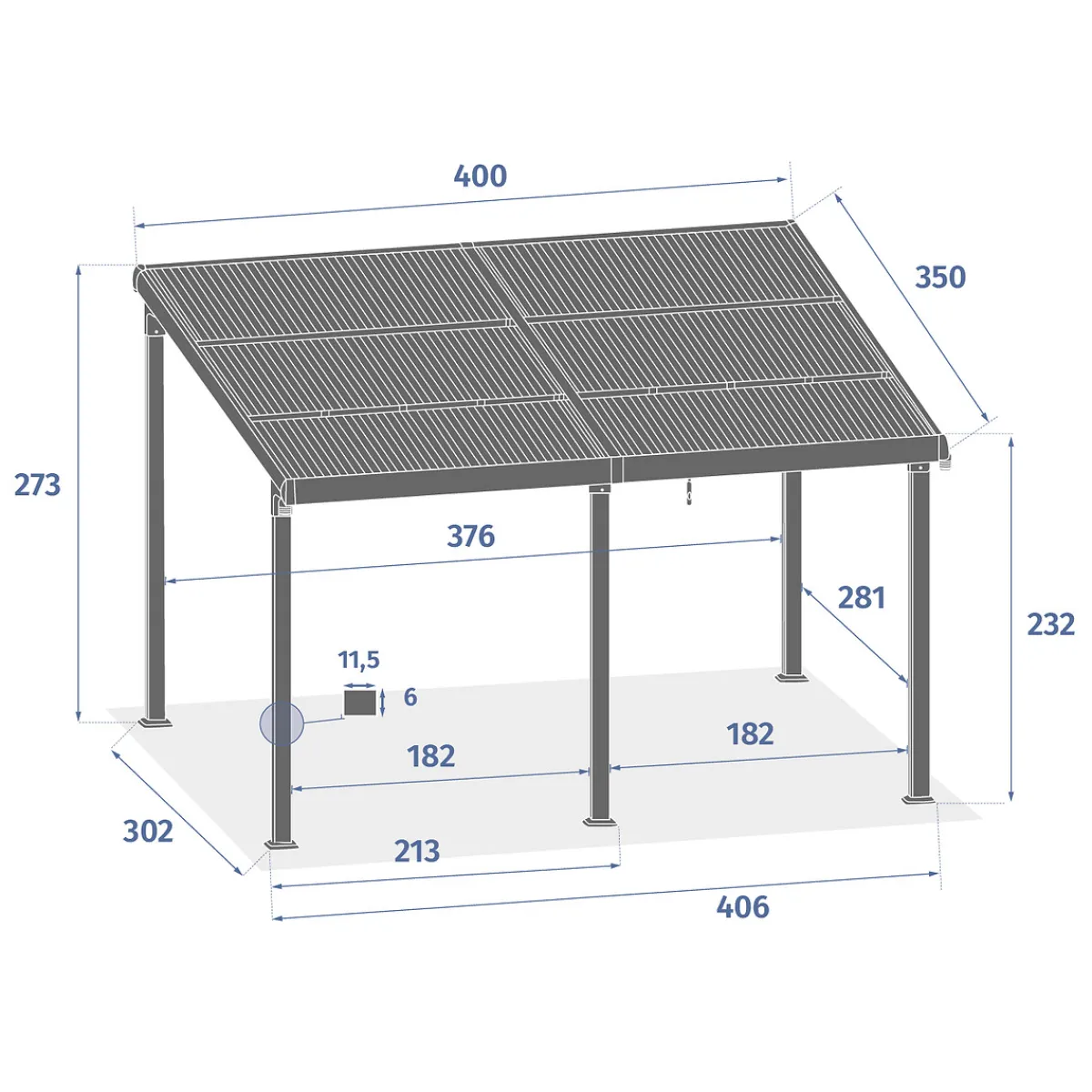 Pérgola ENOLIE graphite de aluminio 3,5x4m | Estructura tratada con epoxi antioxidante y resistente a los rayos UV. Techo de policarbonato. Media extensión de 2M vendida por separado bajo pedido. Cortina de techo (1 lado) vendida por separado bajo pedido. Persianas (medio frente) en texaline vendidas por separado, bajo pedido | Color: Grafito | Medidas: 273x400x350cm | Material: Aluminio | Marca: Hespéride