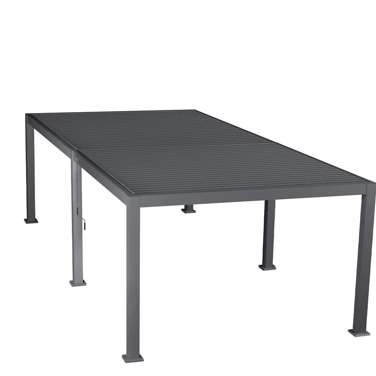 Pérgola ÉVORA gris graphite 3,6x6m | Lamas regulables mediante manivela | Juego de cortinas, mosquiteras y persianas se venden por separado | Drenaje del agua a través de la base de los pies | Color: Grafito | Medidas: 250x368x598cm | Material: Aluminio | Marca: Hespéride