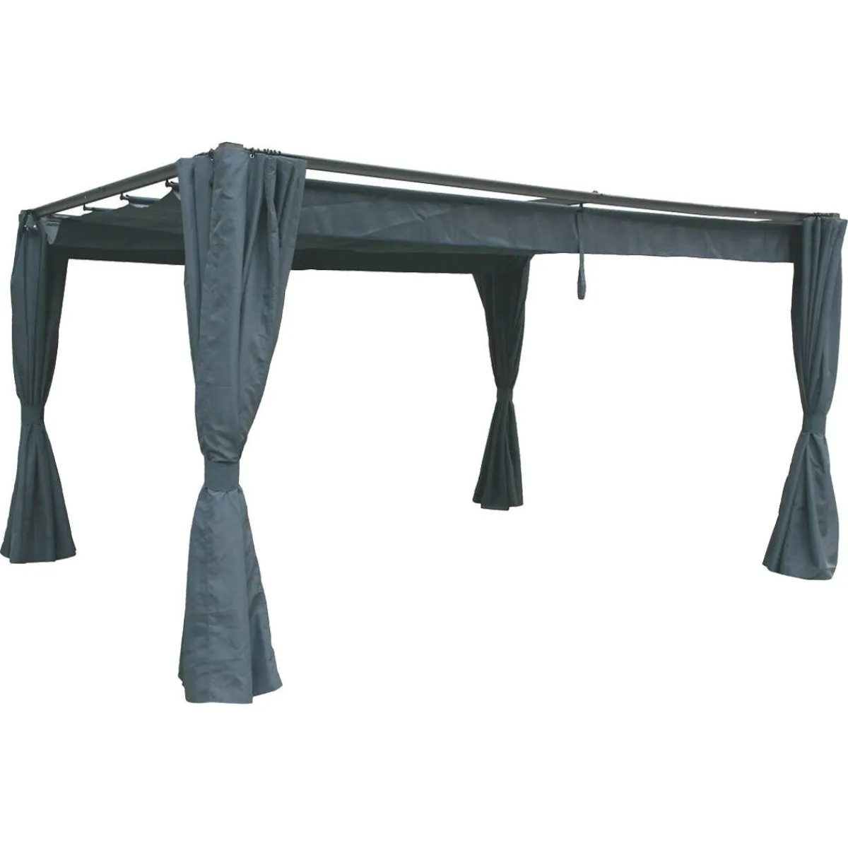 Pérgola PALMEIRA gris ardosia 3x4m | Cortinas no incluidas | Su estructura de aluminio con tratamiento epoxi y su revestimiento UPF 50 la hacen resistente a la intemperie | Tejido con tratamiento hidrófugo que permite que el agua se escurra sin penetrar en el material | Su cubierta retráctil te permite elegir la cantidad de sol que deseas recibir | Color: Gris losa de roca | Medidas: 2.28x3x4m | Material: Aluminio | Marca: Hespéride