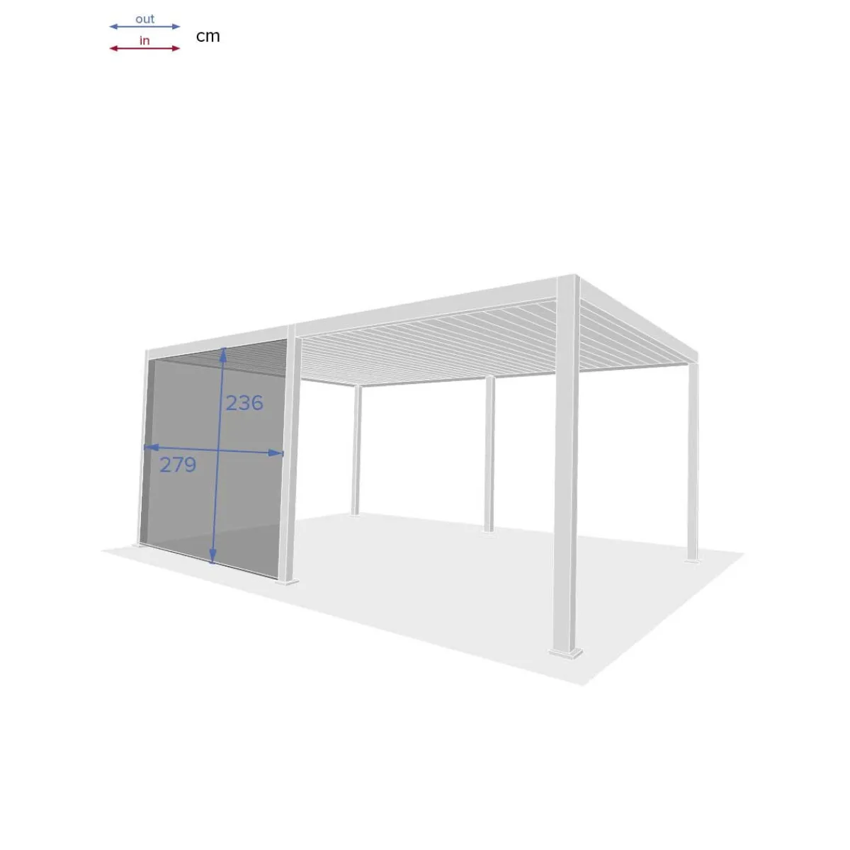 Persiana para pérgola ÉVORA gris grafito 3.6x6m | Textilene 400g/m² | Compatible con la referencia 445590 | Medidas: 3.6x6m | Esté siempre protegido de las pequeñas lluvias de verano y de las corrientes de aire | Ideal para crear un espacio más íntimo | El mantenimiento del toldo puede realizarse con agua, jabón y una esponja | Asegúrate de dejar secar bien la cortina antes de plegarla | Color: Grafito | Medidas: 2.36×2.79m | Material: Pvc, Aluminio