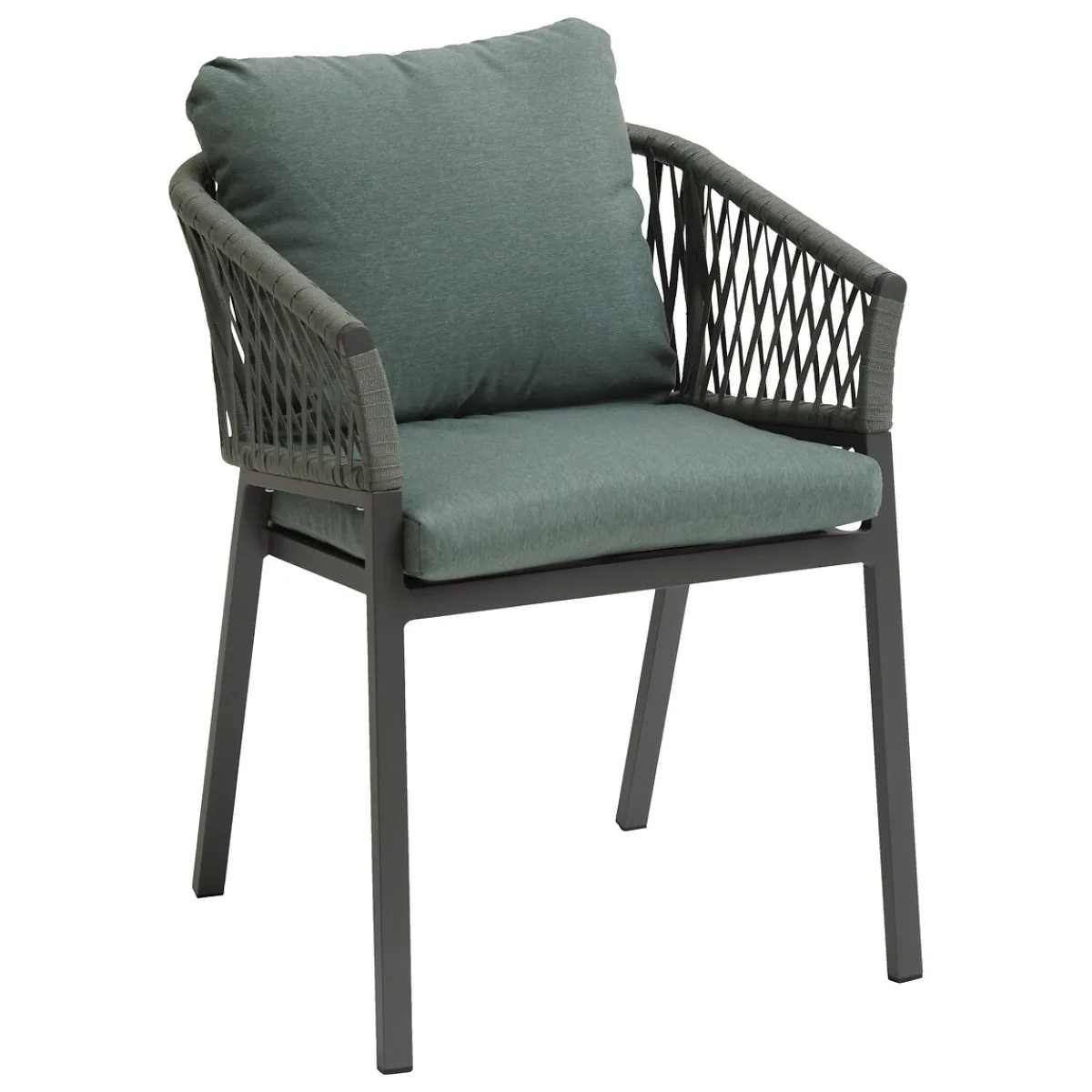 Silla ORIENGO verde oliva | 75.5x56x62cm | Estructura con tratamiento epoxi antioxidante | Tejido con tratamiento hidrófugo que permite que el agua resbale sin penetrar en el material | Producto tratado contra la decoloración | Se puede quitar la funda de los cojines para facilitar la limpieza | Color: Verde Oliva, Grafito | Medidas: 75.5x56x62cm | Material: Aluminio, Acrílico, Poliéster | Marca: Hespéride