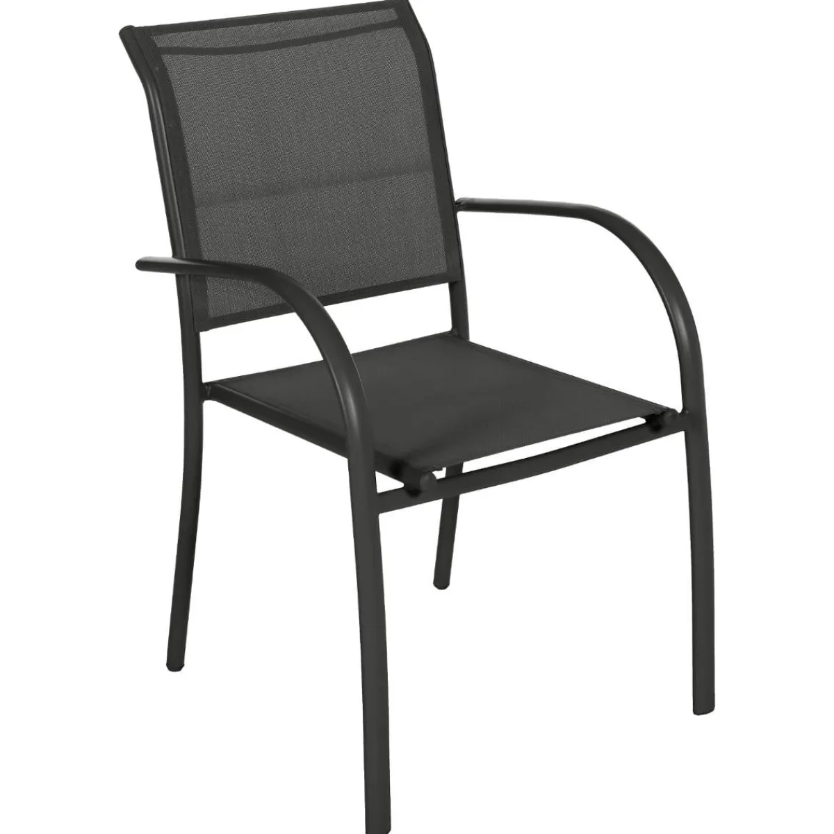 Sillón PIAZZA en gris antracite y graphite | 88x56x65cm | El sillón Piazza antracita es una pieza atemporal. Su armazón de color grafito con líneas redondeadas y su revestimiento de textileno le confieren un asiento muy cómodo | Apilable para guardarlo fácilmente, este sillón hace juego con la mesa de jardín Piazza | Armazón con tratamiento epoxi antioxidante | Color: Armazón grafito, Tejido antracita | Dimensiones: 88x56x65cm | Material: Aluminio, Textileno | Colección: Piazza | Marca: Hespéride