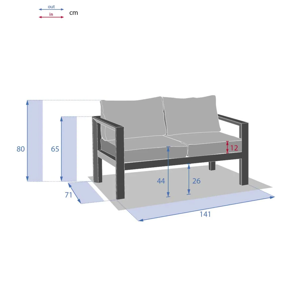 Sofá Evasion Gris Grafito 2 Plazas | Estructura con tratamiento epoxi antioxidante | Cojines resistentes a los rayos UV con fundas extraíbles para facilitar su limpieza | Color: Gris | Medidas: 65x71x141cm | Material: Aluminio | Marca: Hespéride