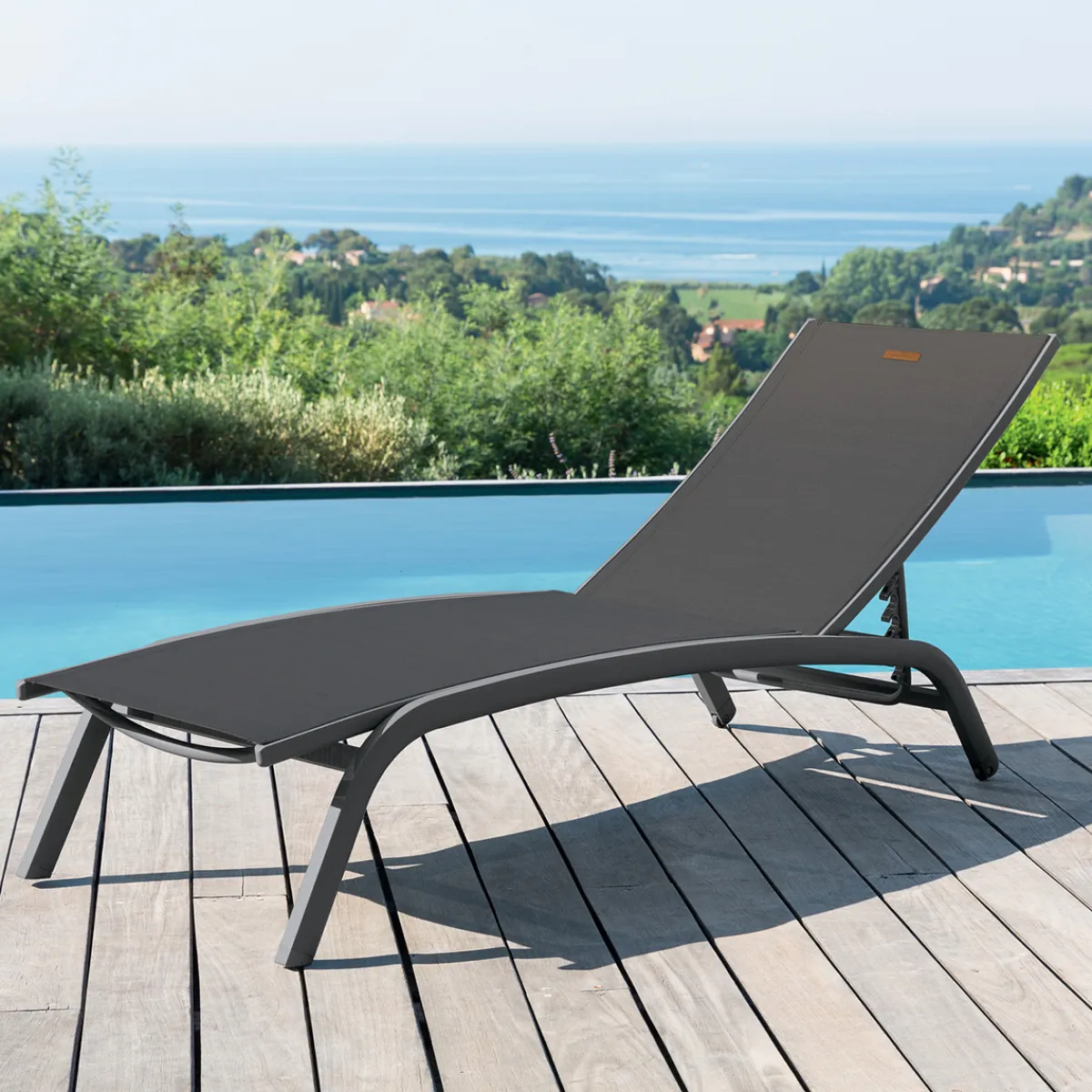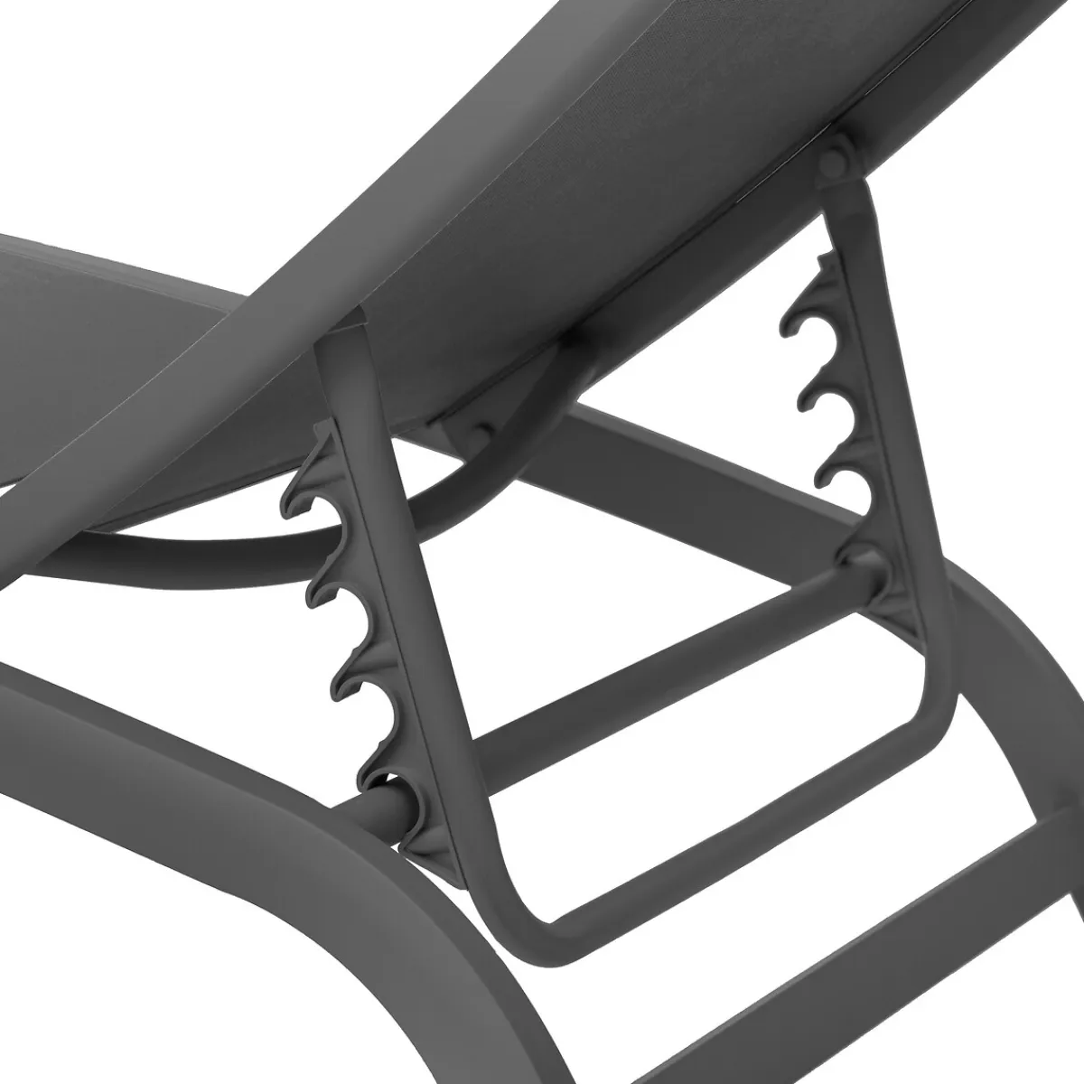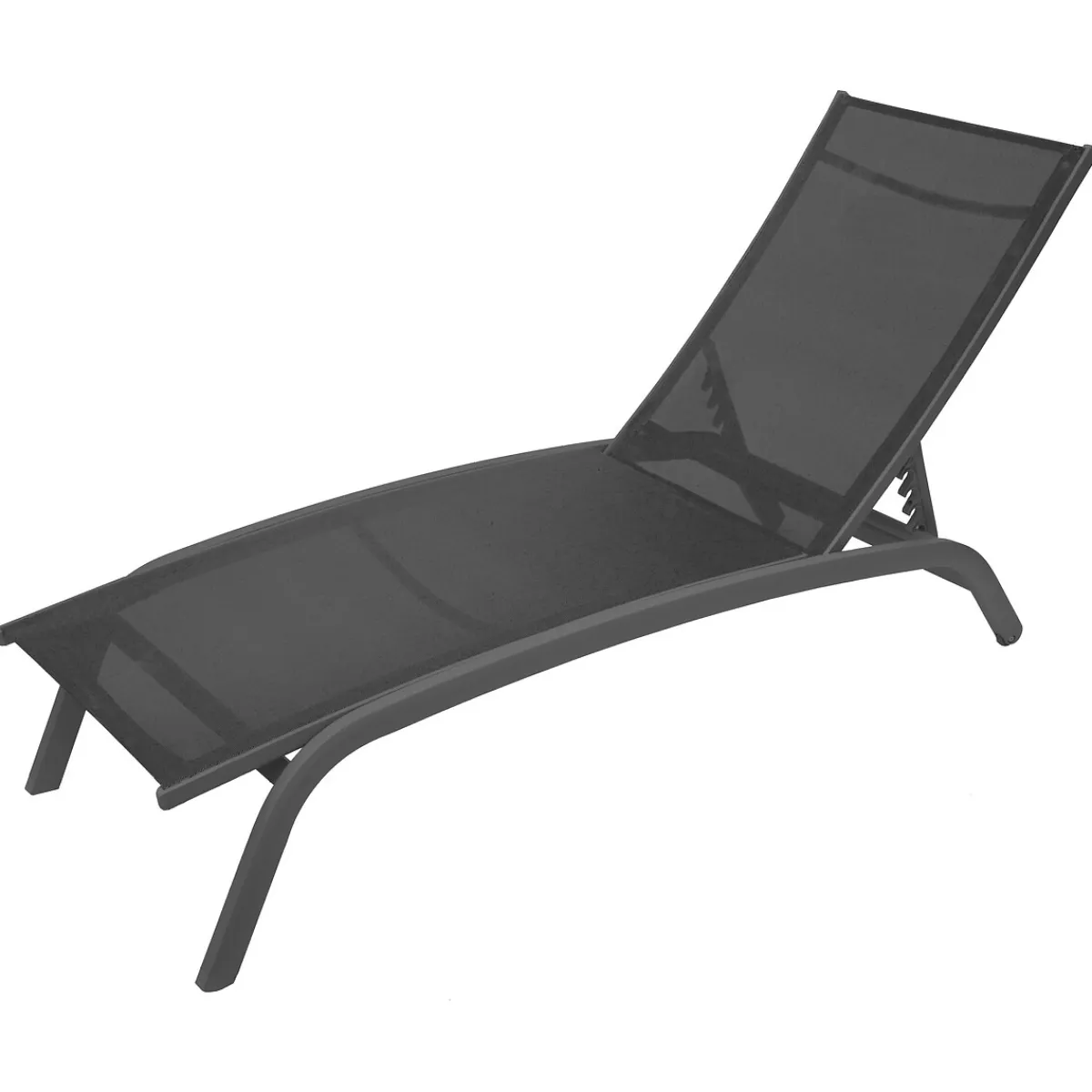 Tumbona BONAO gris antracite | 4 posiciones | 83x64x194cm | Estructura con tratamiento epoxi antioxidante | Producto apilable, fácil de guardar para un verdadero ahorro de espacio | Hasta 4 posiciones de reclinado. Posición 100% reclinable para un confort óptimo | Fácil de desplazar gracias a las ruedas | Producto tratado contra la decoloración | Color: Gris Antracita , Estructura Grafito | Medidas: 83x64x194cm | Material: Aluminio, Textilene | Marca: Hespéride