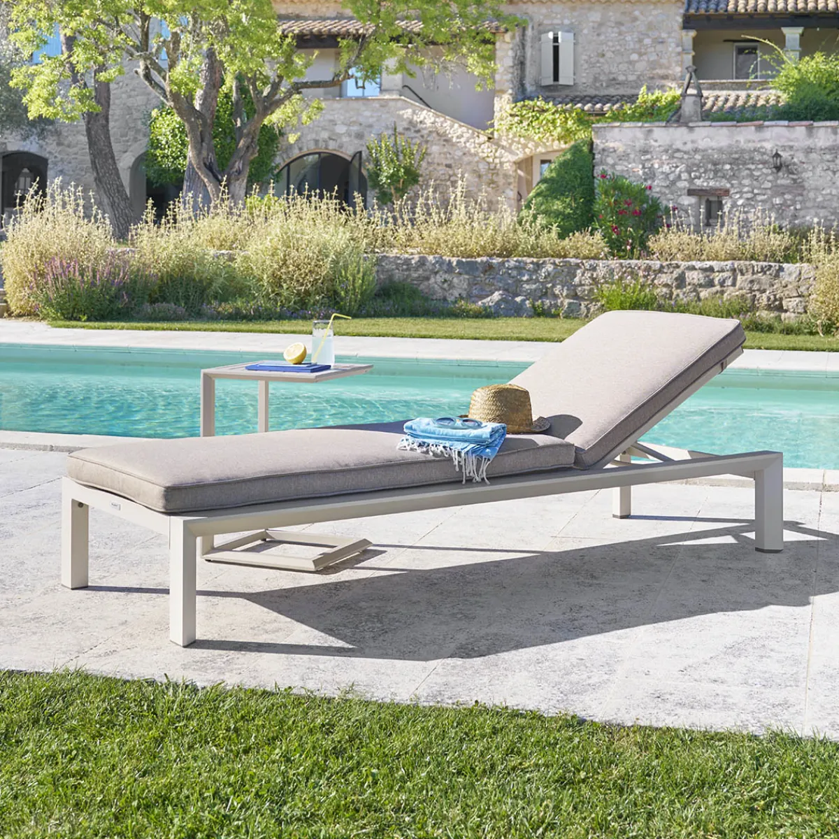 Tumbona ÉVASION argile | 30x76x200cm | Relájese cómodamente en la tumbona Evasion de la gama Hespéride | Cojín de poliéster desenfundable en color arcilla | Puede inclinar el respaldo gracias a las 5 posiciones disponibles | Fácil de montar, las 2 ruedas le permiten desplazarla a la zona más conveniente de su jardín | Tratada con epoxi antioxidante y resistente a los rayos UV | Peso máximo permitido por persona: 110Kg | Color: argile| Medidas: 30x76x200cm | Material: Aluminio, Texaline | Marca: Hespéride