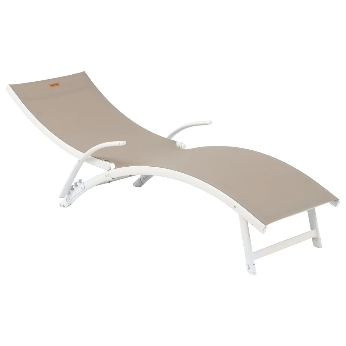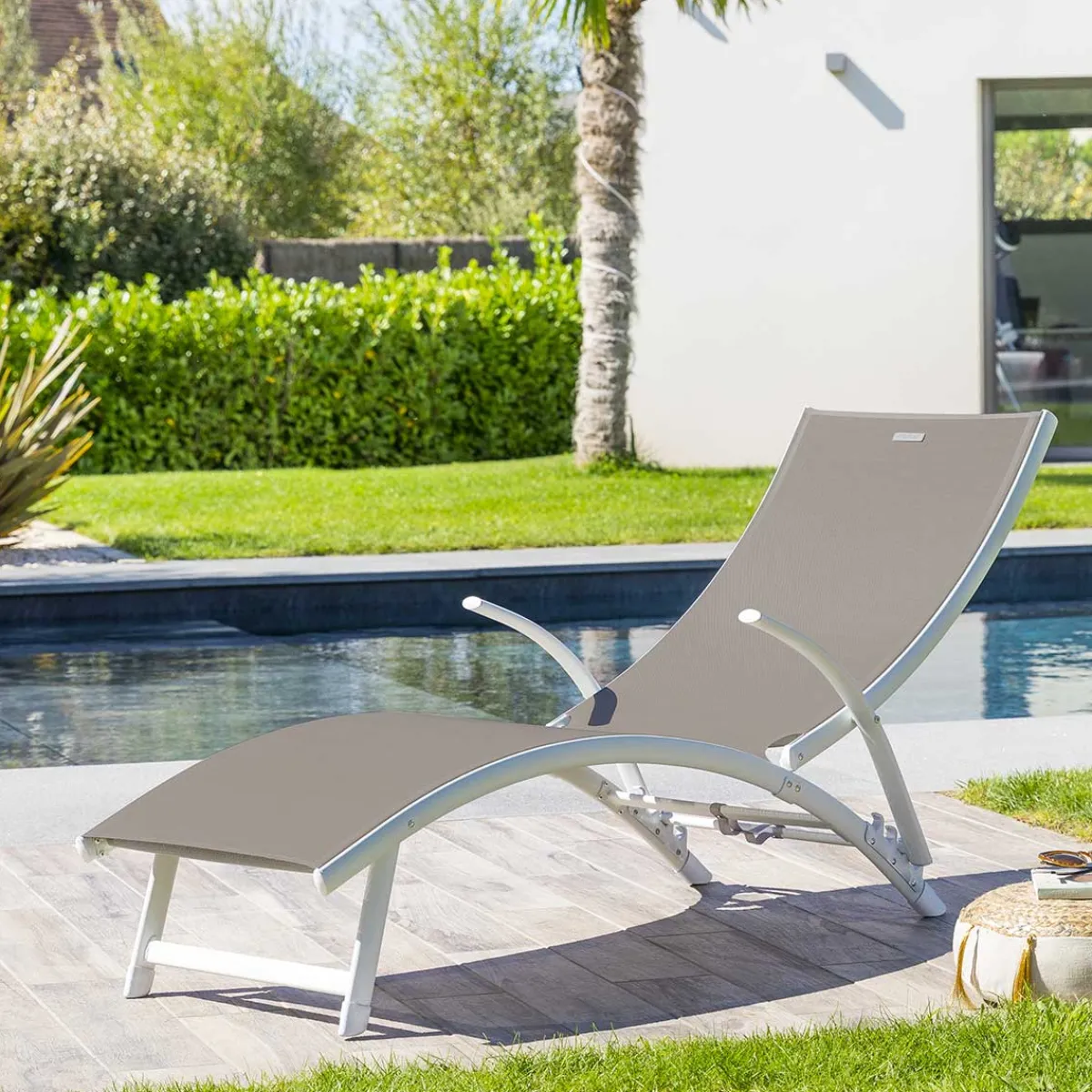 Tumbona SAMBA beige | Estructura con tratamiento epoxi antioxidante. Producto plegable, fácil de guardar y perfecto para espacios reducidos. Producto apilable, fácil de guardar para ahorrar espacio. Reposabrazos para un confort óptimo. Hasta 4 posiciones de reclinado. Compatible con la referencia 412392 para proteger tus muebles del sol y de la intemperie. Producto tratado contra la decoloración | Peso máximo soportado: 110kg | Color: Beige , Blanco | Medidas: 99x59x174.5cm | Material: Aluminio; Textilene | Marca: Hespéride