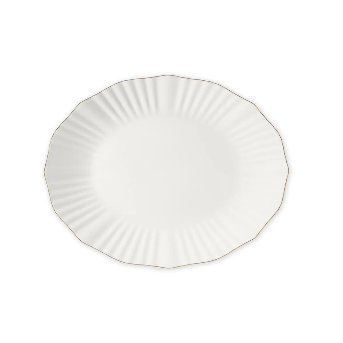 Bandeja ovalada AUBREY blanca y dorada 38cm | Todo lo que tu mesa necesita está en homastores.com . Descubre nuestra colección de vajillas, vasos, cubiertos, posavasos, soportes, piezas para servir. Sirve con Happy Home Living, ¡y todo sabrá mucho mejor! | Color: Blanco, Dorado | Medidas: 30x38cm | Material: Porcelana
