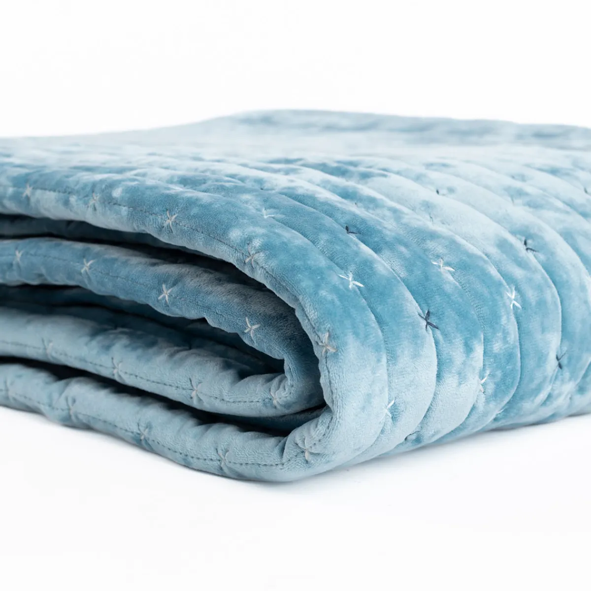 Edredón MIKA azul de terciopelo 160x220cm | ¡Encuentre aquí todo lo necesario para un sueño reparador! Descubra nuestra colección de textiles para el hogar con propuestas de ropa de cama muy confortable: edredones, fundas, colchas, sábanas, almohadas para dormir… | Color: Azul | Medidas: 160x220cm | Material: Terciopelo, Poliéster