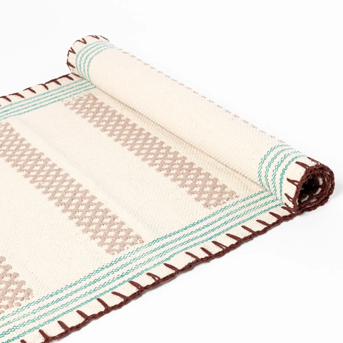 Alfombra de cocina WONJA beige y azul 60x150cm | Viste tu mesa y cocina con nuestra colección de textiles de cocina. Manteles, servilletas para servir sin olvidar la funcionalidad de los delantales y paños de cocina. ¡Cada detalle es fundamental! | Color: Beige, Azul | Medidas: 60x150cm | Material: Algodón