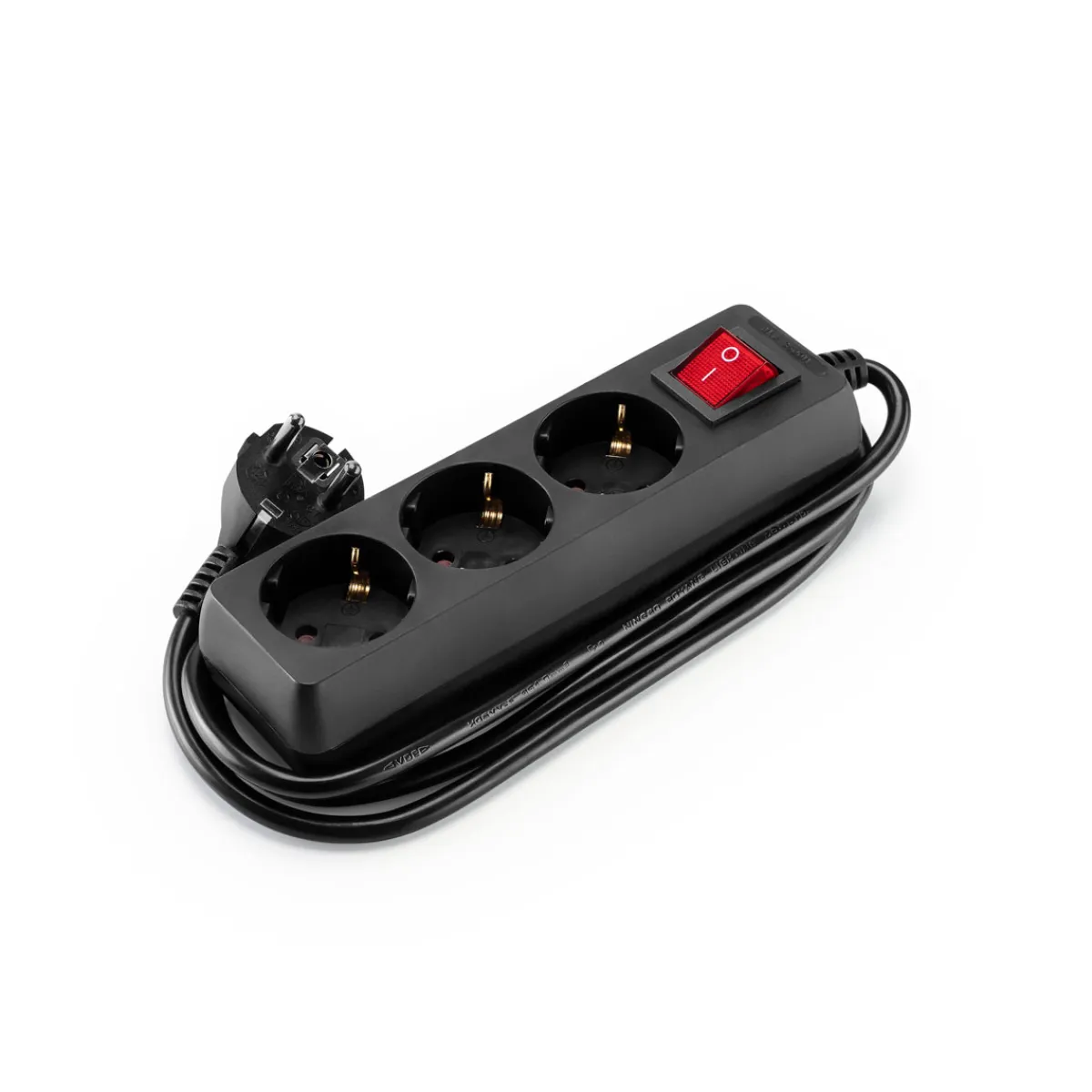 Regleta eléctrica negra 3 tomas con interruptor | Cable 1.5m | Descubre este y otros artículos de iluminación de hôma para iluminar y decorar tu hogar | Color: Negro | Medidas: 1.5m | Material: PVC
